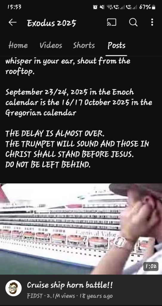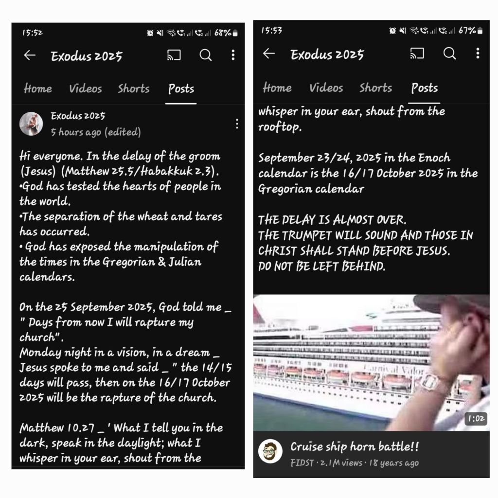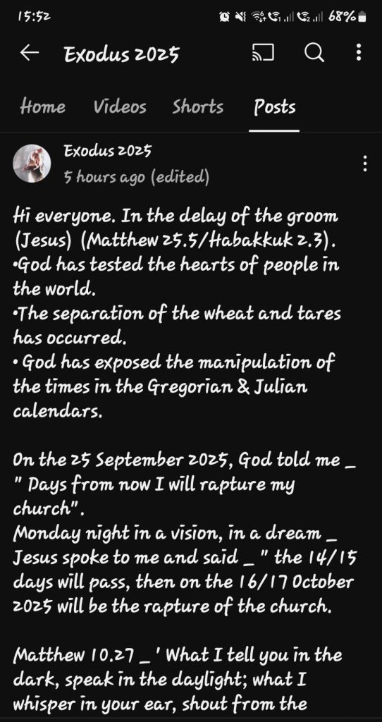 Remember Brethren in YAHUSHUA HA MASHIACH a.k.a JESUS CHRIST of Nazareth that when THE LORD YAH SHADDAI released Brother Joshua Mhlakela from South Africa 🇿🇦 to release HIS Prophetic Dates for THE HOLY RAPTURE TO HEAVEN that HE gave to him back in Year 2018, GOD THE FATHER, ABBA YAHUVEH/YAHWEH and YAHUSHUA HA MASHIACH a.k.a JESUS CHRIST of Nazareth worked around the dates we recognise to prepare us for THE HOLY RAPTURE TO HEAVEN by causing THE FIRST SET OF SPIRITUAL 3 DAYS OF DARKNESS to occur on Saturday 23rd August 2025/MENACHEM AV 29 followed by THE SPIRITUAL HOLY RAPTURE TO HEAVEN of first the children and then the adults from Sunday 24th August 2025/MENACHEM AV 30 to Tuesday 26th August which 2025/ELUL 2!