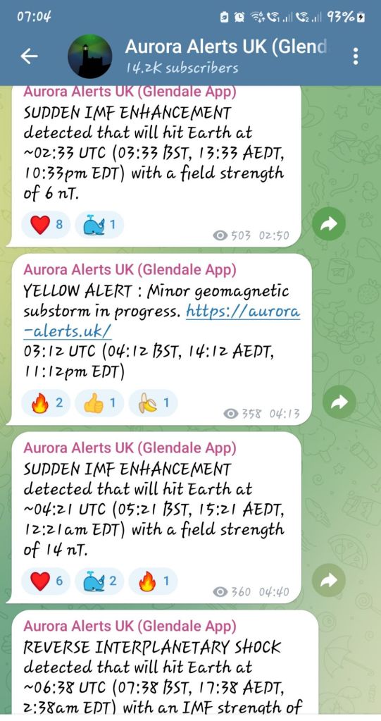 Shalom, Please pay attention to These IMF – AURORA BOREALIS a.k.a NORTHERN LIGHTS Alerts ⚠️ 📢 🚨 ⚠️ 📢 because this is very unusual, Brethren in YAHUSHUA HA MASHIACH a.k.a JESUS CHRIST of Nazareth!