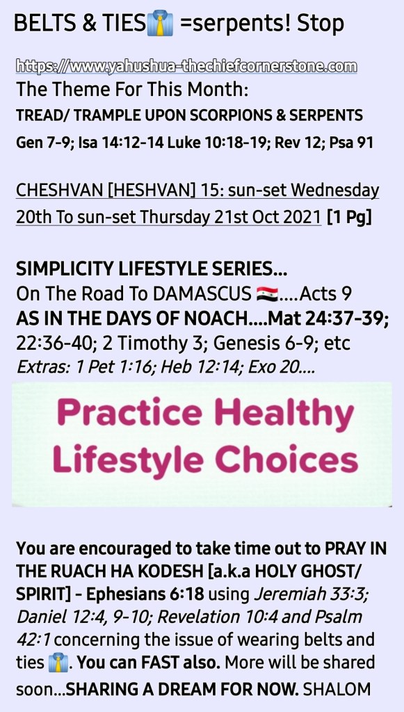 MY DREAM GIVEN BY THE CREATOR, YAH SHADDAI CONCERNING THE USE OF BELTS and TIES: