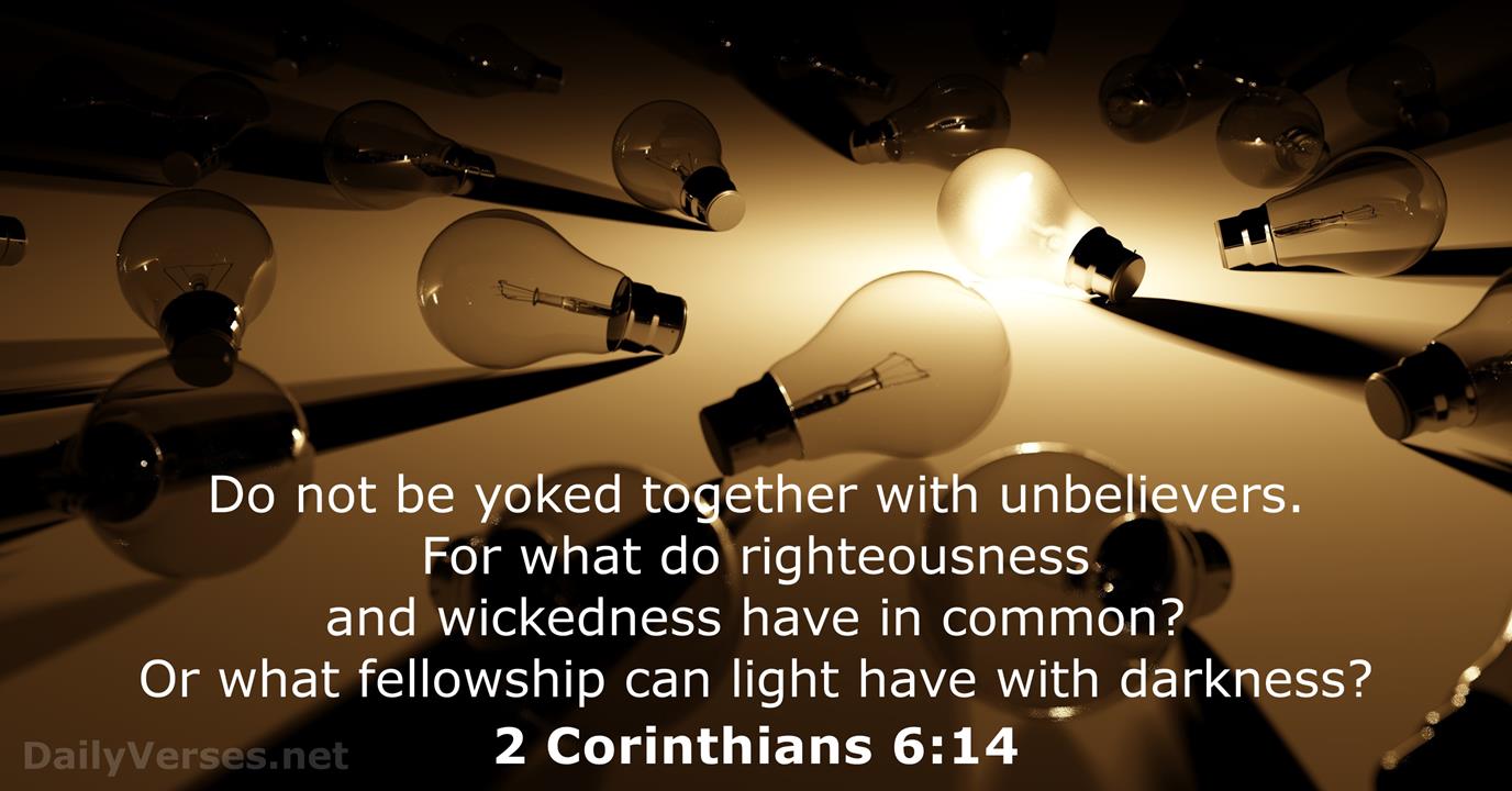2 Corinthians 6:14-16 Be ye not unequally yoked together with unbelievers: for what fellowship hath righteousness with unrighteousness? and what communion hath light with darkness?