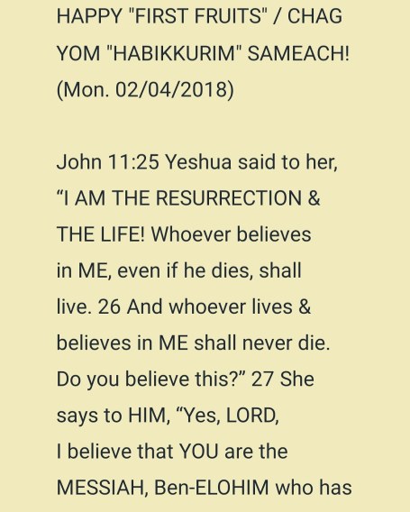 ….based on John 11:25-27 in relation to the Feast of FIRSTFRUITS….
