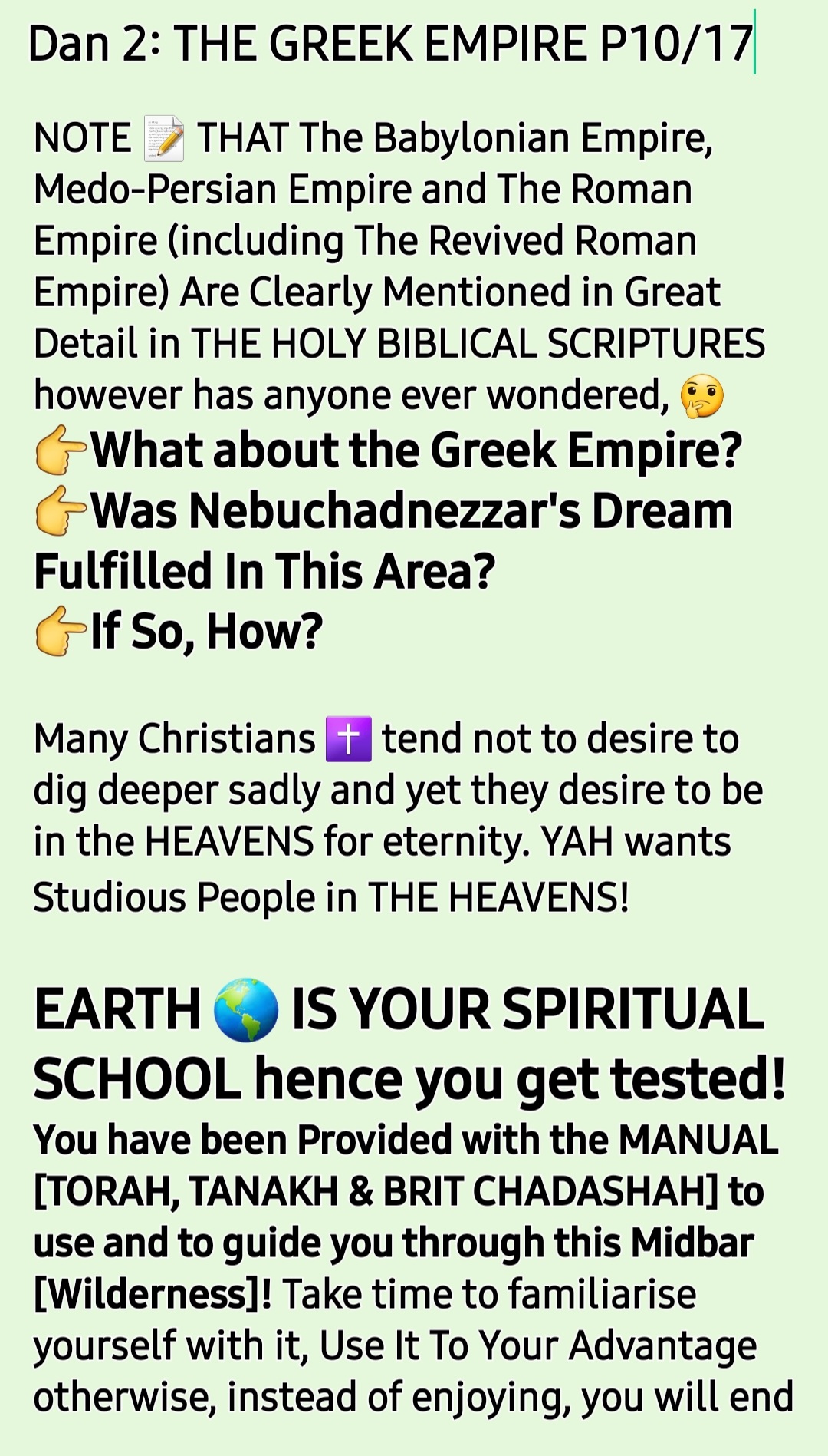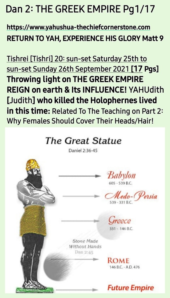 In our Current BIBLES, we have the BABYLONIAN EMPIRE, MEDO-PERSIAN EMPIRE and ROMAN EMPIRE RULE over ISRA’EL and the rest of the world however, THE GREEK EMPIRE Reign on earth was omitted!
