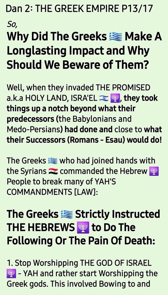 Unless you get an incline of what THE GREAT TRIBULATION a.k.a TIME OF JACOB’S SORROW/TROUBLE was like during The Greek Empire Reign on earth , you may not have full understanding of what is to come! *The Children of ISRA’EL are very studious when it comes to YAH’S WORD and so they have understanding when things happen however because many of them of this generation are blinded from acknowledging and according YAH’S SALVATION [YAHUSHUA HA MASHIACH], it is very difficult for them to connect the dots fully well as they should hence we are to pray for them rather than condemn them.*