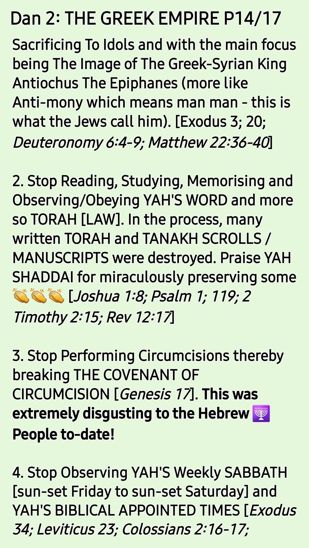 *When YAHUSHUA HA MASHIACH was speaking about THE ABOMINATION OF DESOLATION in Matthew 24 in reference to Daniel’s Prophecy, HIS listeners [Disciples] knew exactly what YAHUSHUA HA MASHIACH was talking about because it has happened before in BIBLICAL HISTORY!* Remember Ecclesiastes 1:9: