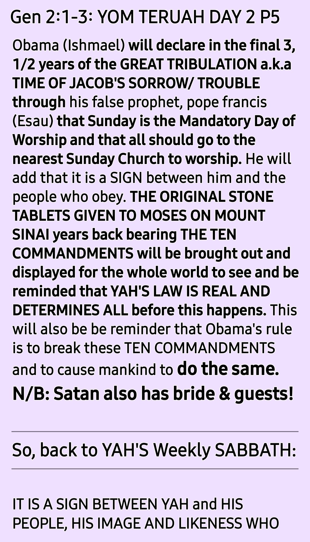 *Also, YAH’S JUDGEMENT has begun. For 10 days yearly (Tishrei 1 to 10), all of mankind on earth 🌎 is judged in accordance with THE 10 COMMANDMENTS whether we know it or not and whether we believe it or not!!!*