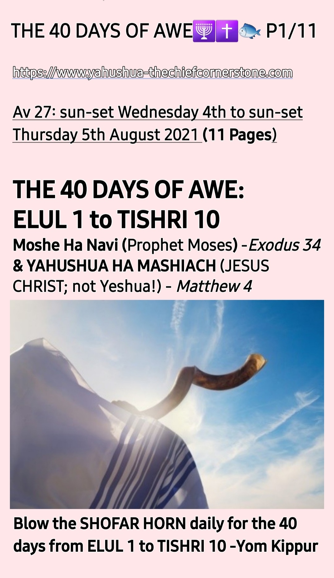ELUL 1 – TISHRI 10: Moshe’s & YAHUSHUA HA MASHIACH’S 40 DAY FASTING & PRAYER IN RHE WILDERNESS!