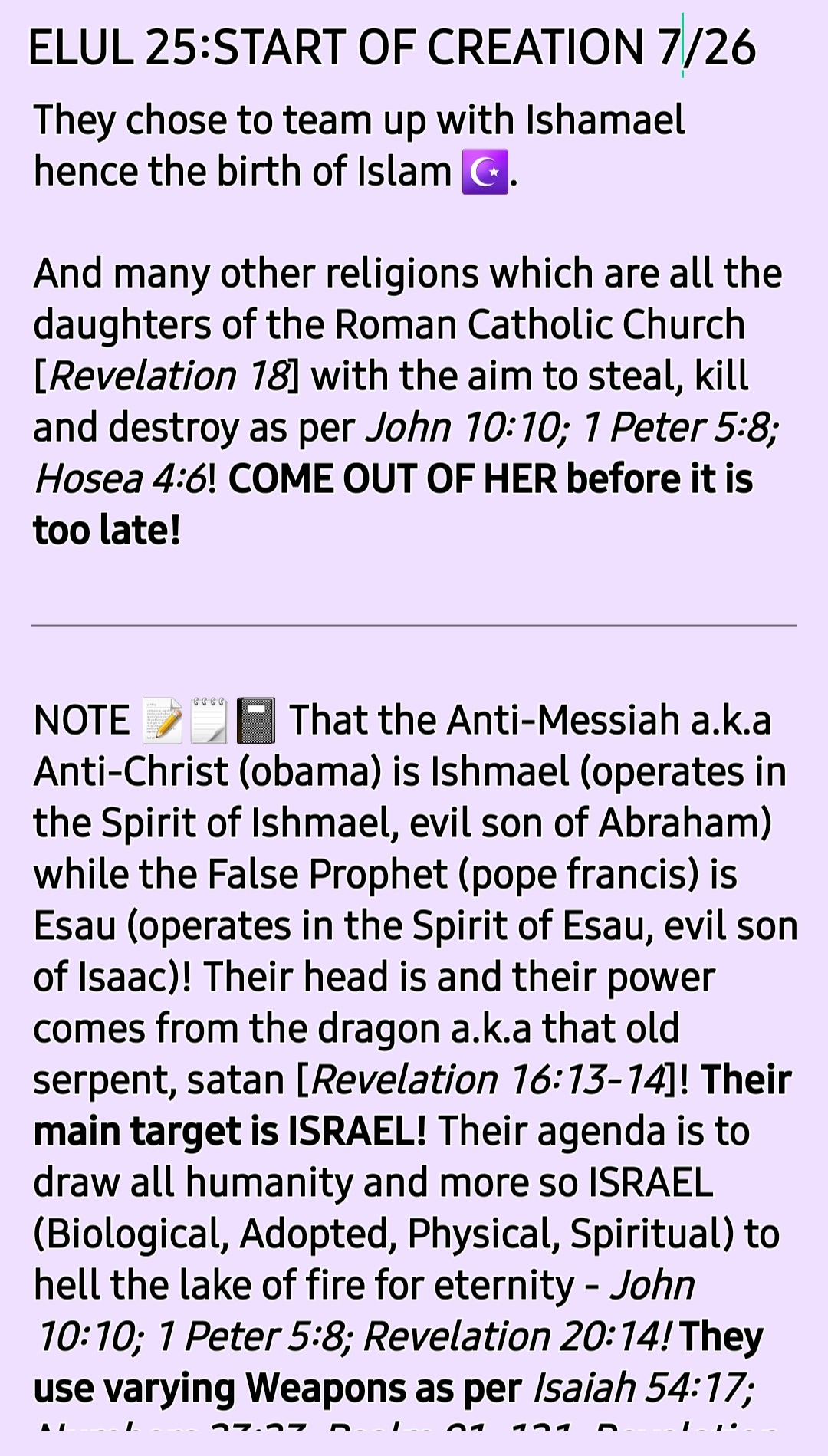 SHALOM! I am Brother Ade Israel and my wife is Sister Perpetua Shulamit. This is an online MESSIYAHNIC [MESSIANIC] HEBREW [a.k.a Jewish] PENTECOSTAL PROPHETIC MINISTRY with a HEALING/RESTORATION focus. See our TESTIMONY, VISION and MISSION STATEMENT Sections for more information on this. Welcome to our site [HOLY TEMPLE OF THE CREATOR, YAH SHADDAI without walls] created for PREACHING YAH'S GOSPEL [Matthew 28:18-20] and Sharing CRUCIAL END TIME TRUTHS [John 14:6; 8:32; Hosea 4:6]. *Please NOTE that we do not call ourselves nor anyone else who is a believer in and follower of THE ONE and ONLY TRUE MESSIAH [MASHIACH]/SAVIOUR/REDEEMER /DELIVERER who is popularly known worldwide as JESUS CHRIST [and Iesous, Jesu, Yesu, Yethu, etc] "Christian"* because we have learned through [HOLY] REVELATION from THE CREATOR/MAKER, YAH SHADDAI based on Malachai 1:1-5 and Romans 9:12-14 and Deuteronomy 12:29-32; Jeremiah 10; Ezekiel 8; etc that the terms, "Christian" and "Christianity" are Roman Vatican (Esau/Edom/Idumea) terms. *"Christian" (a tax bracket code person) actually or in fact means "A follower of the Anti-Messiah a.k.a Anti-Christ system* of Sin a.k.a Wickedness a.k.a TORAHlessness a.k.a LAWlessness System mention in 2 Thessalonians 2. *"Christianity" (a tax bracket code faith) a.k.a "Christian-Anity" is "the Vaticanisation of the Acts 2 Apostollic Foundation of Worshipping THE ONE TRUE GOD, YAH SHADDAI hence what is abominable to THE CREATOR/MAKER is widely acceptable in the name of 'the law has been done away with through nailing it to the cross', for example, Christianity encourages eating pig meat (pork, ham, bacon, etc) which is abomination as per Leviticus 11".* *Swine is a symbol of pig-mentation (skin colour) and demons love pig-mentation. Also, swine were worshiped as a deity in that location where YAHUSHUA HA MASHIACH [a.k.a JESUS CHRIST] cast the principality called "legion" out.* NOTE how the Romans introduced, established and emphasise "Easter ham" a.k.a Ishtar ham. they made it a tradition to eat pig meat 🐖 🐷 🐽 🐗 🐖 🐷 🐽 🐗 🐖 on the so-called Resurrection day of Jesus Christ, Why??? Pig meat is abomination to the LORD YAHUVEH and YAHUSHUA therefore pollutes YAH'S [GOD'S] TEMPLE (our bodies)! The Vatican is a den of demons and we are not of Rome/Esau!!!! Also, the term, "religion" = relagre = to bind back! Sadly, all roads lead back to Rome 🇮🇹 and The Vatican 🇻🇦. *Also, sadly, many of THE HOLY BIBLICAL SCRIPTURES have been Romanised and Vaticanised hence THE CREATOR/MAKER, YAH SHADDAI is calling us back to THE HEBREW ROOTS OF OUR FAITH IN HIM, HalleluYAH!* So, we call ourselves THE ORIGINAL TERM used before Roman and The Vatican changed/altered things which is: "MESSIYAHNIC [MESSIANIC] HEBREWS a.k.a JEWS"! We believe in plus followe in the footsteps of THE ONE and ONLY TRUE MESSIYAH [MESSIAH] as led by RUACH HA KODESH [HOLY SPIRIT; Not Ghost!!!] are in love with THE TORAH/LAW as per Joshua 1:8; Psalm 1; 119; Matthew 5:17-20; Colossians 2:16-17; etc. We believe in John 3:16; Romans 6:23; Isaiah 1:18-20 Matthew 28:18-20; etc as well as Acts 2; 8; etc: Genuinely Believe, Confess and Be Baptised by Immersion In Water followed➡️ by Immersion In RUACH HA KODESH then Daily Work Out Your SALVATION With Fear and Trembling [Philippians 2:12-16] while endeavouring To Be HOLY AS YAH Is HOLY [Leviticus; 1 Peter 1:16; Hebrews 12:14] and Bearing Many GOOD FRUIT FOR YAH SHADDAI [John 15; Galatians 5] !!! Once again, Welcome to our site [HOLY TEMPLE OF THE CREATOR, YAH SHADDAI without walls] created for PREACHING YAH'S GOSPEL [Matthew 28:18-20] and Sharing CRUCIAL END TIME TRUTHS [John 14:6; 8:32; Hosea 4:6]. ➡️This is our GETTR link [GETTR is the uncensored version of Twitter, just so you know] : https://gettr.com/user/yahushua7 ➡️We also have a *TELEGRAM Channel* [uncensored alternative to WhatsApp] and ➡️*MeWe* [uncensored alternative to Facebook and Instagram]! ➡️Here is our donation link if you please [if you wish to be a BLESSING to us and others in need worldwide through this online Ministry]: 📌https://www.paypal.me/AdeIsrael and/or 📌https://www.paypal.me/PNAMUTEBI ➡️Here is our donation page which explains what donations are for, if you please: https://yahushua-thechiefcornerstone.com/donations/ ➡️➡️➡️We are called and appointed by THE CREATOR, YAH SHADDAI to raise awareness of "THE JEWISH-NESS OF THE MESSIYAH [MESSIAH]" who is popularly known as JESUS CHRIST OF NAZARETH and how this affects THE BODY OF YAHUSHUA HA MASHIACH! ➡️➡️➡️THE HOLY TRINITY GODHEAD WHOM we worship are known as: 📌➡️1. GOD THE FATHER, ABBA YAHUVEH'S (a.k.a YAHWEH); 📌➡️2. GOD THE SON, YAHUSHUA [a.k.a YAHSHUA] HA MASHIACH and 📌➡️3. GOD THE MOTHER [IMMAYAH] a.k.a GOD THE HOLY SPIRIT (Not Ghost!) [RUACH HA KODESH] a.k.a SHEKINYAH GLORY [Isaiah 60:1-2; etc] a.k.a WISDOM [Proverbs 8:22-31]! Please NOTE that 2 Corinthians 13:14 is evidence of the existence of THE HOLY TRINITY GODHEAD [YAHUVEH – FATHER; YAHUSHUA HA MASHIACH – SON; IMMAYAH a.k.a SHEKINYAH GLORY – MOTHER] just as Revelation 16:13 read alongside Revelation 13 is the evidence of the existence of ⚠️the Unholy Trinity godhead (lucifer – father, Barrack Hussein Obama – son and Pope Francis a.k.a Jorge Mario Bergoglio – mother)!⚠️ There is a crucial and urgent need for increased ACKNOWLEDGEMENT/RECOGNITION and AWARENESS of the MESSIYAH [MESSIAH] JESUS CHRIST'S [Not Yeshua! ; Not YeshaYAHU!!!] HEBREW-NESS or JEWISHNESS plus how it affects us, mankind who desire to dwell with HIM for eternity. *The Left Behind during and after THE FIRST HOLY CATCHING AWAY (Not "RAPTURE" which means rape) TO THE HEAVENS will be the most affected by this issue of THE NAME OF THE MESSIAH!* It will begin to take effect during The Upcoming 3 Days and Nights of Worldwide Gross Darkness [Amos 8:9-10; Joel 2:30-32; Matthew 12:38-42; Mark 8:12; etc]. See how people gen
