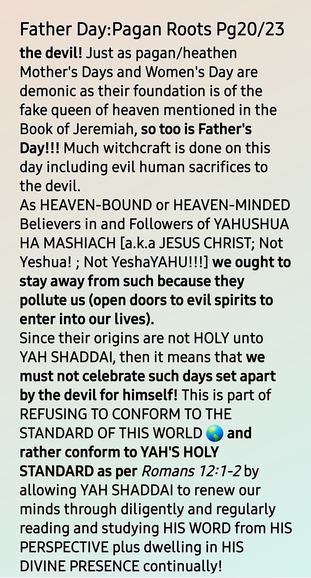 Remember that THE CREATOR/MAKER, YAH SHADDAI is instructing all males to stop the wearing of ties đ as they are not part of HIW HEAVENLY HOLINESS STANDARD DRESSCODE!!! They are an idea from the kingdom of darkness. We have shared about this before in the SIMPLICITY LIFESTYLE SERIES. Those who wish to be RAPTURED TO THE HEAVENS must pay attention to this very closely and take the necessary action ASAP for we are held accountable for what we know. Jeremiah 33:3