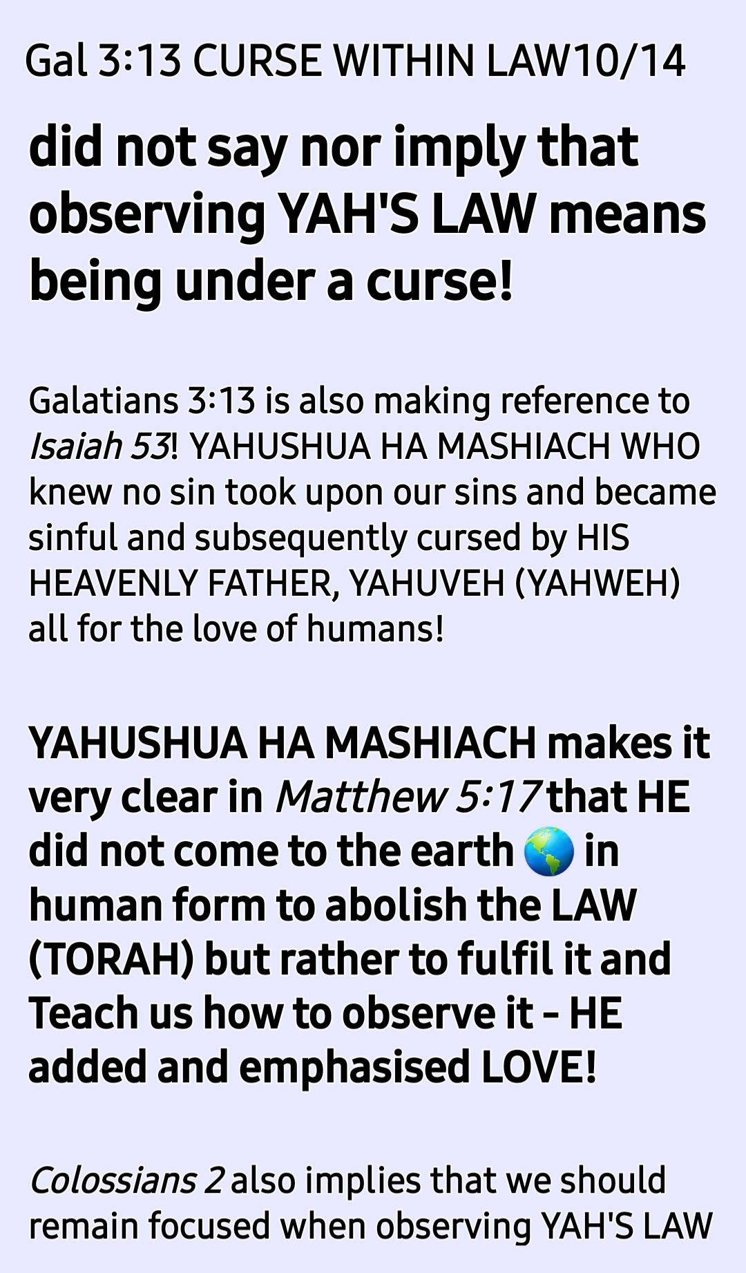 This HOLY BIBLICAL SCRIPTURE has cause so many problems in Christianity. Praise YAH ALMIGHTY for HE is throwing more light on it in these end times, HalleluYAH HalleluYAH HalleluYAH!