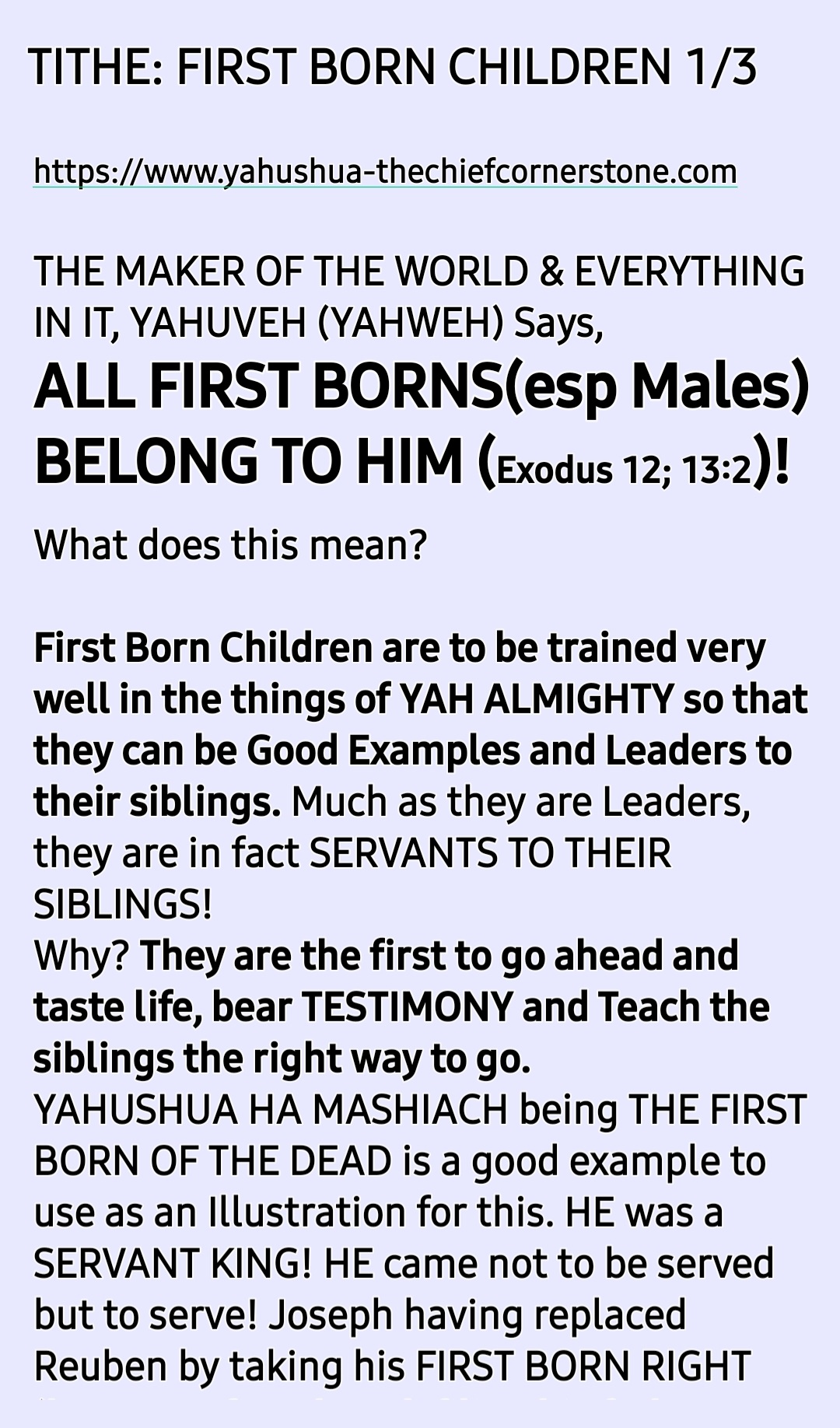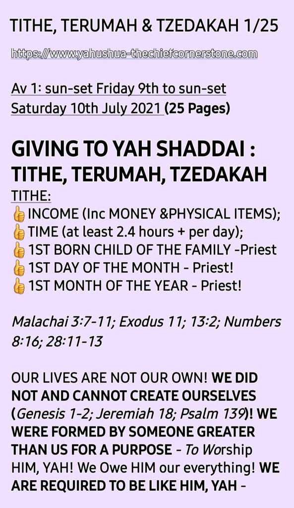 This is a Crucial part of OUR WALK OF FAITH IN YAHUSHUA HA MASHIACH (JESUS CHRIST; not Yeshua!) TO Understand and act upon! May YAH have Mercy on us where we have robbed HIM and give us the Grace not to rob HIM anymore going forward, in YAHUSHUA HA MASHIACH’S NAME, AMEN! Note that the 144,000 of Revelation 14 are a TITHE of YAHUSHUA HA MASHIACH to ABBA YAHUVEH (YAHWEH)!