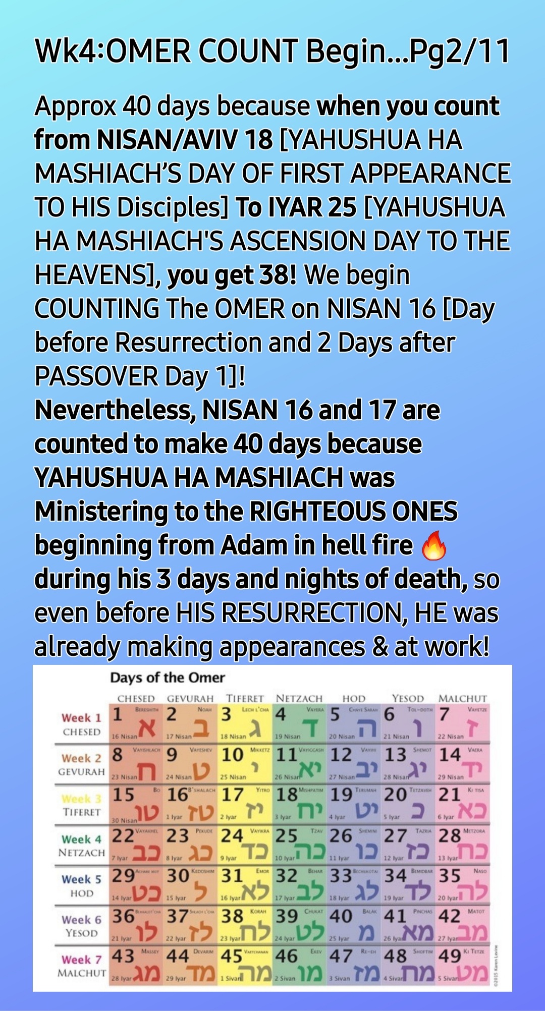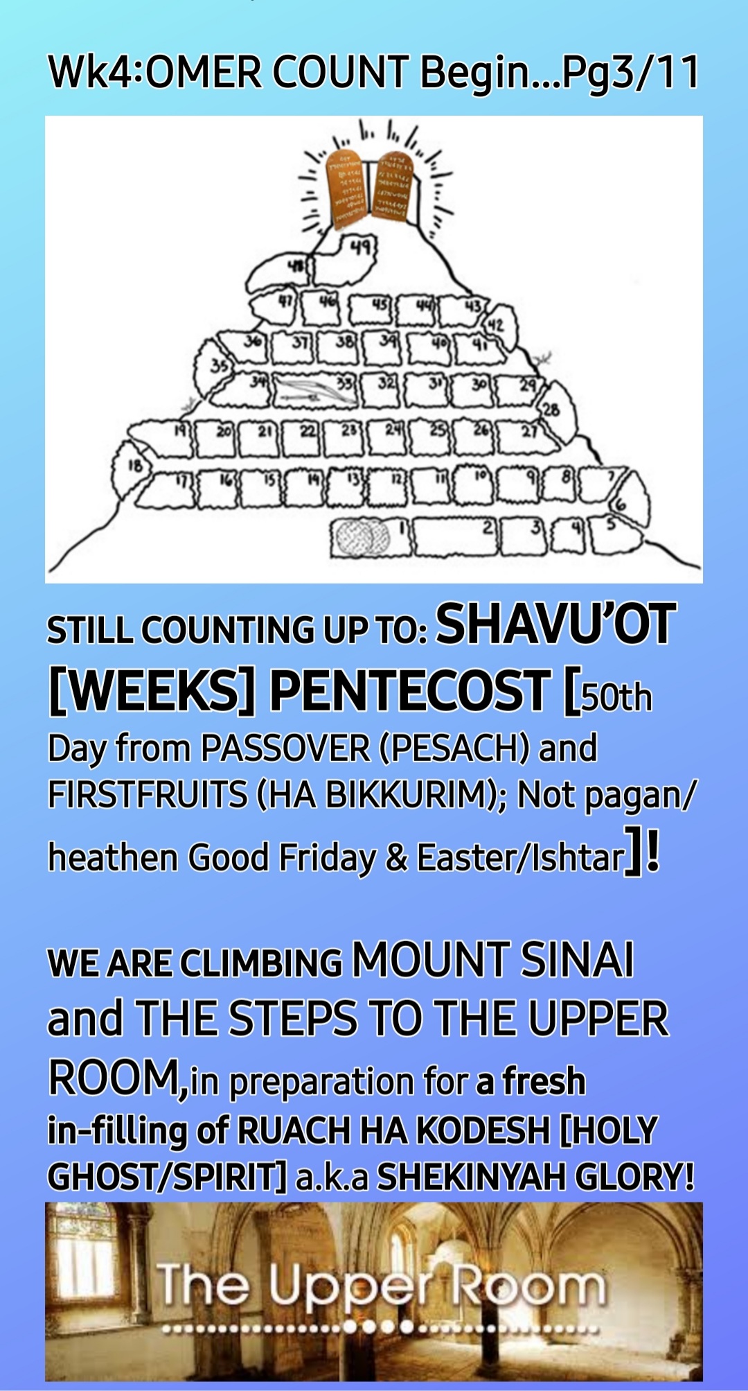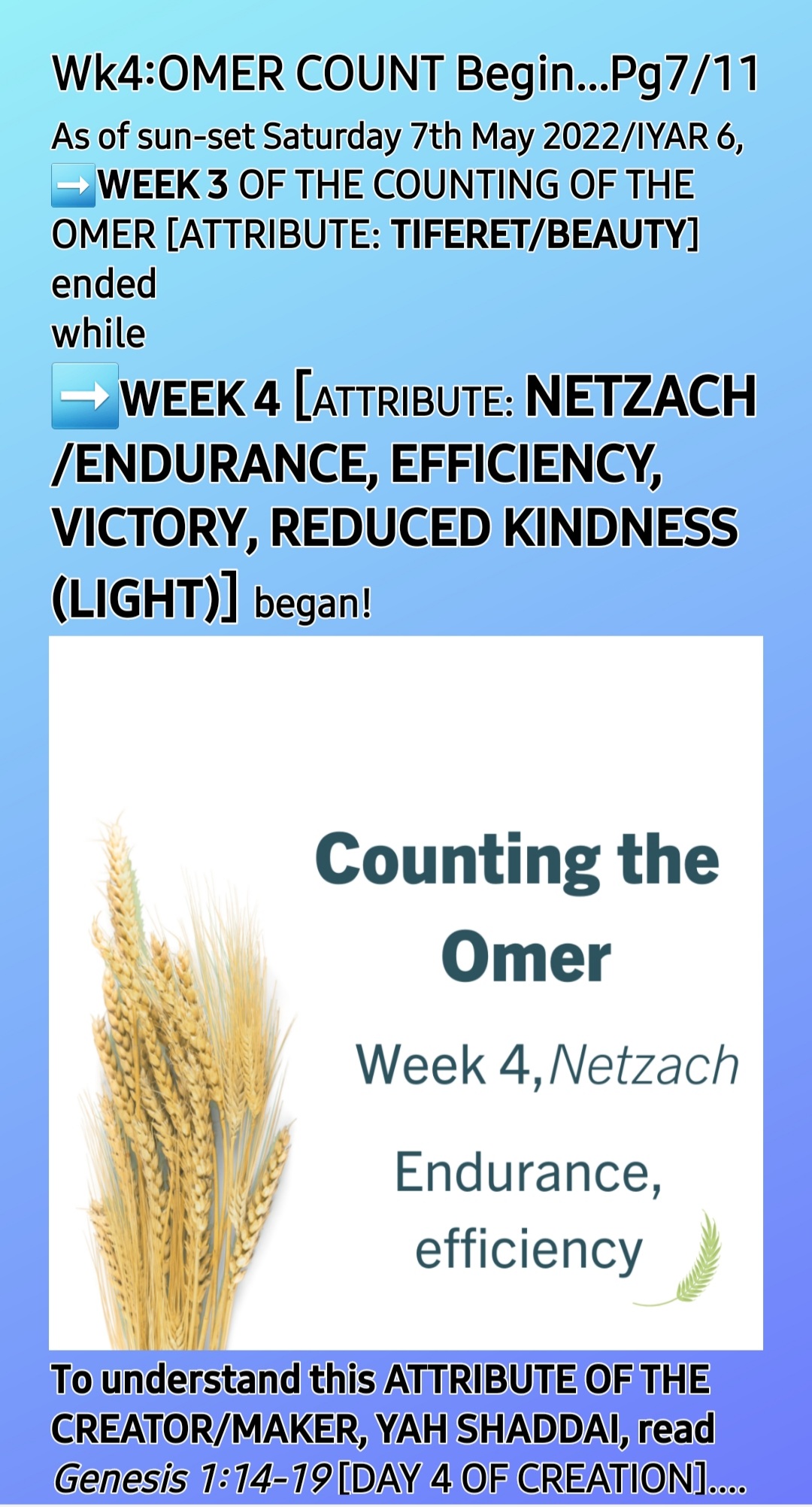 Wish to share more about THE ATTRIBUTES OF YAH SHADDAI in relation to THE 7 DAYS OF CREATION a.k.a THE 7 DAYS OF THE WEEK and THE 7 WEEKS OF COUNTING THE OMER however not been able to thus far. PLEASE continue to bear with us. Will try to share as soon as possible. In the meantime, let us study Psalms 1 and 119.