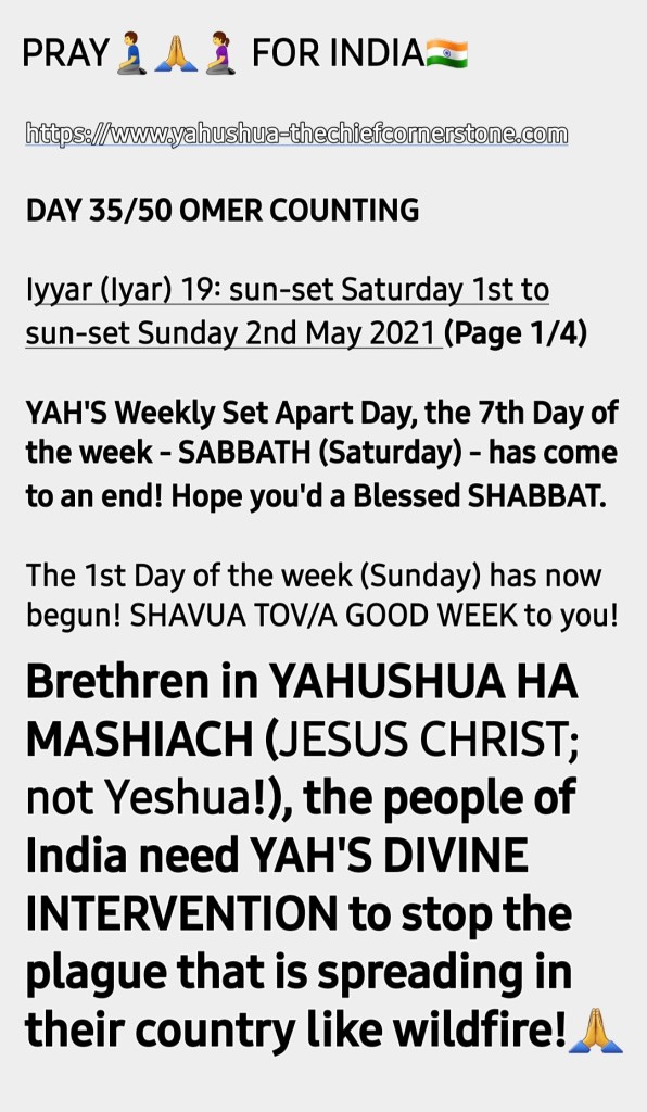 BODY OF YAHUSHUA HA MASHIACH (JESUS CHRIST, not Yeshua!), Arise and cry out to YAH SHADDAI on behalf of India.🙏🙏🙏