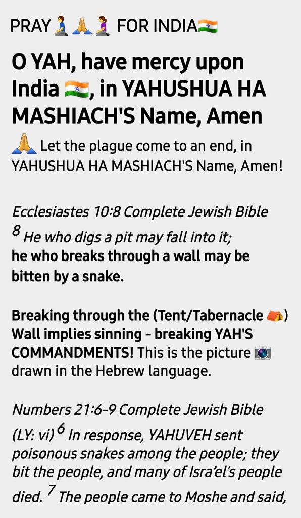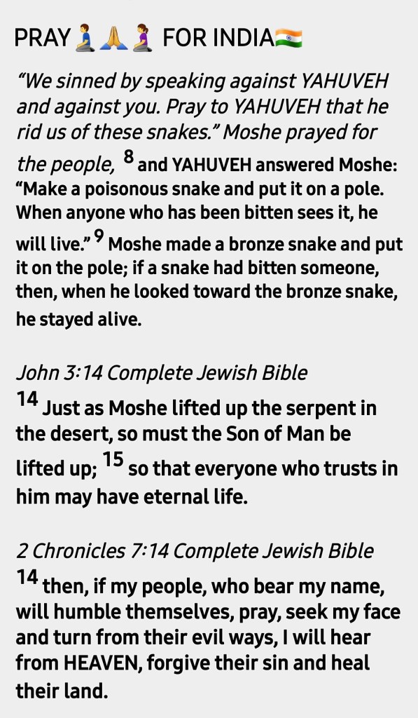 INDIA 🇮🇳, the serpent (Satan) is biting you. Only YAHUSHUA HA MASHIACH, THE ONLY TRUE SAVIOUR OF THE WORLD 🌎 can stop it and heal you. REPENT, Go on your knees and repent before YAH SHADDAI🙏