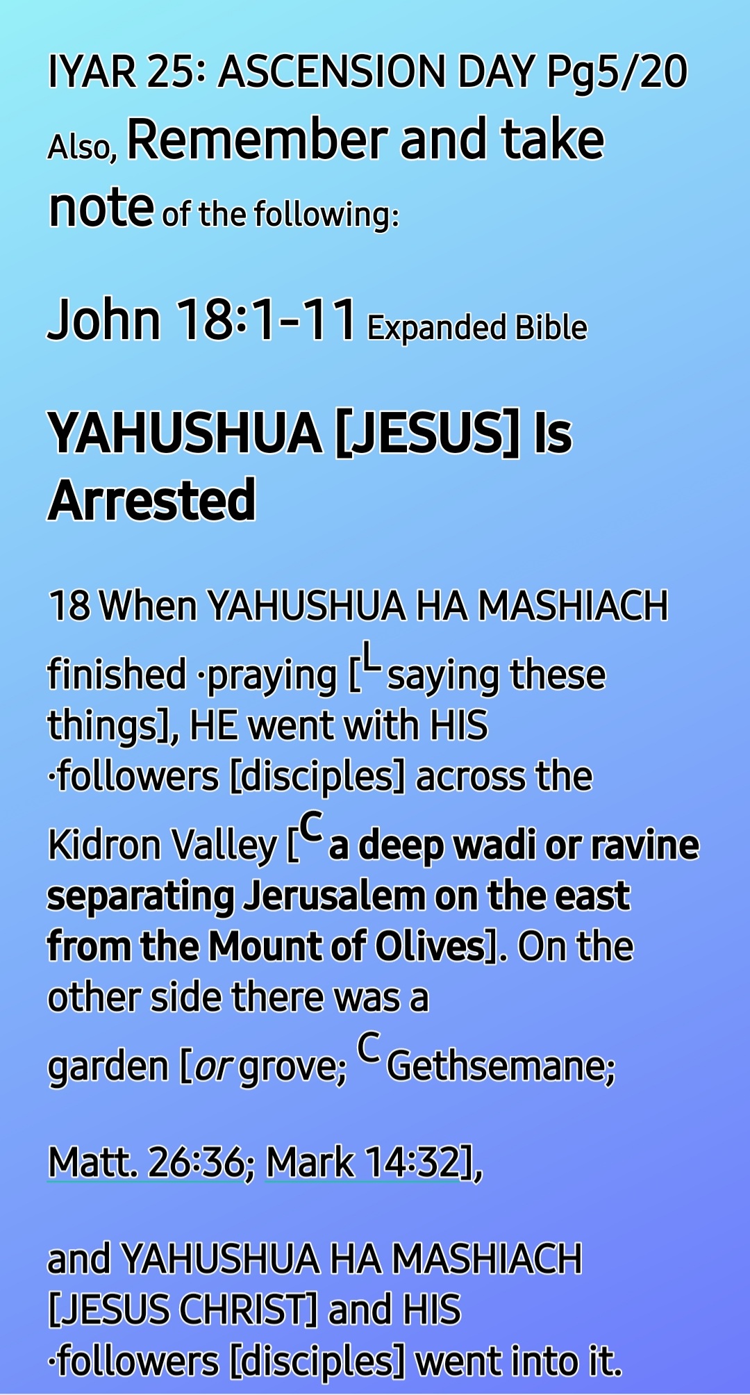 AUDIO Recording 31: PT2 ASCENSION DAY – Acts 1; THE TWO COVENANTS (Jer 31; Matt 26:28); etc [Fri 27-5-22]