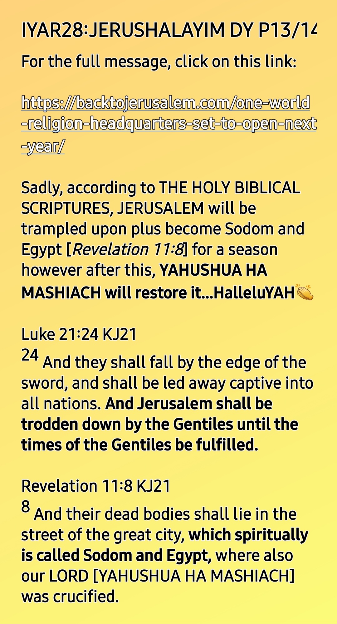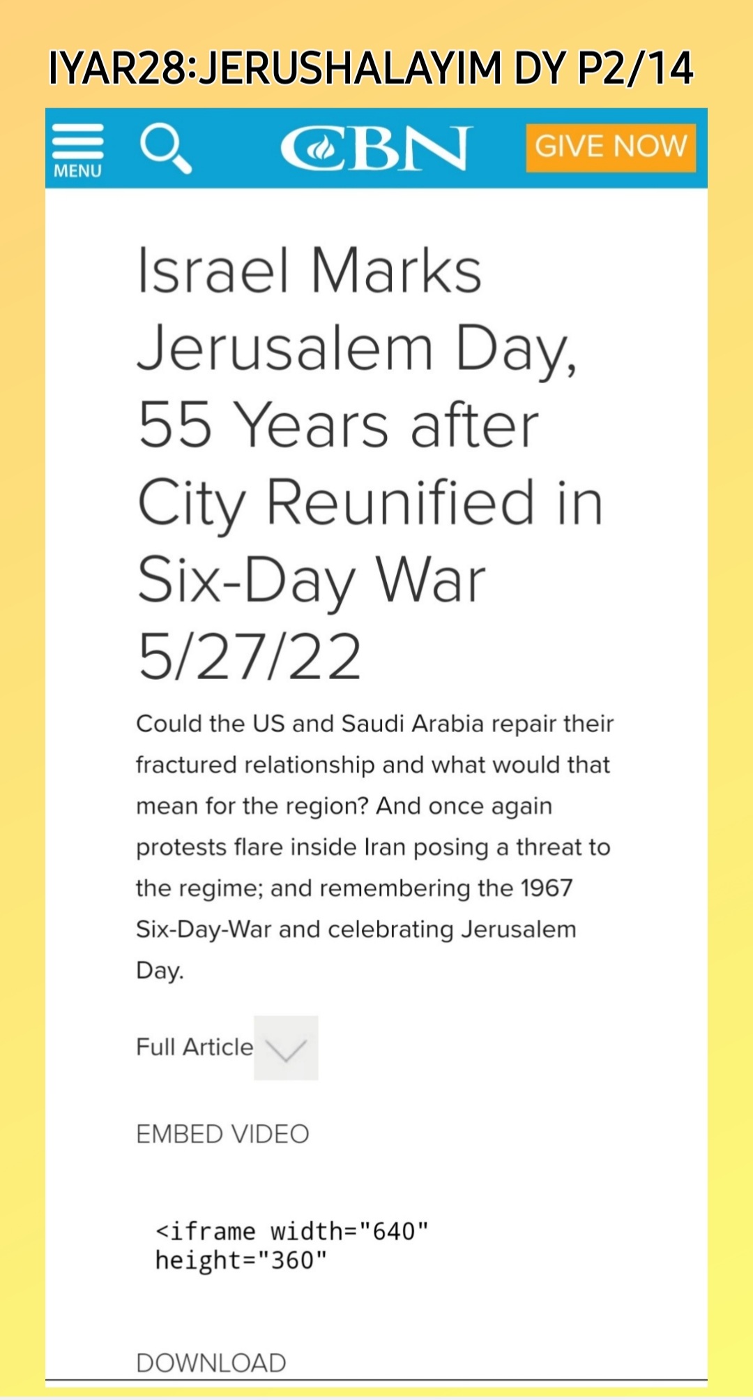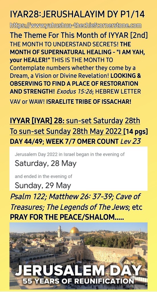 IYAR 28: YAHRUSHALAYIM a.k.a JERUSALEM DAY