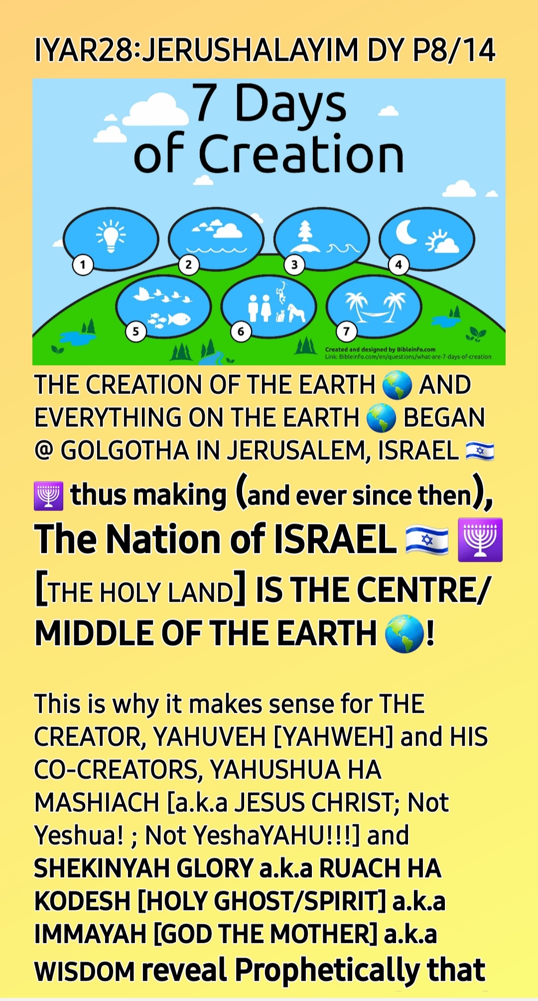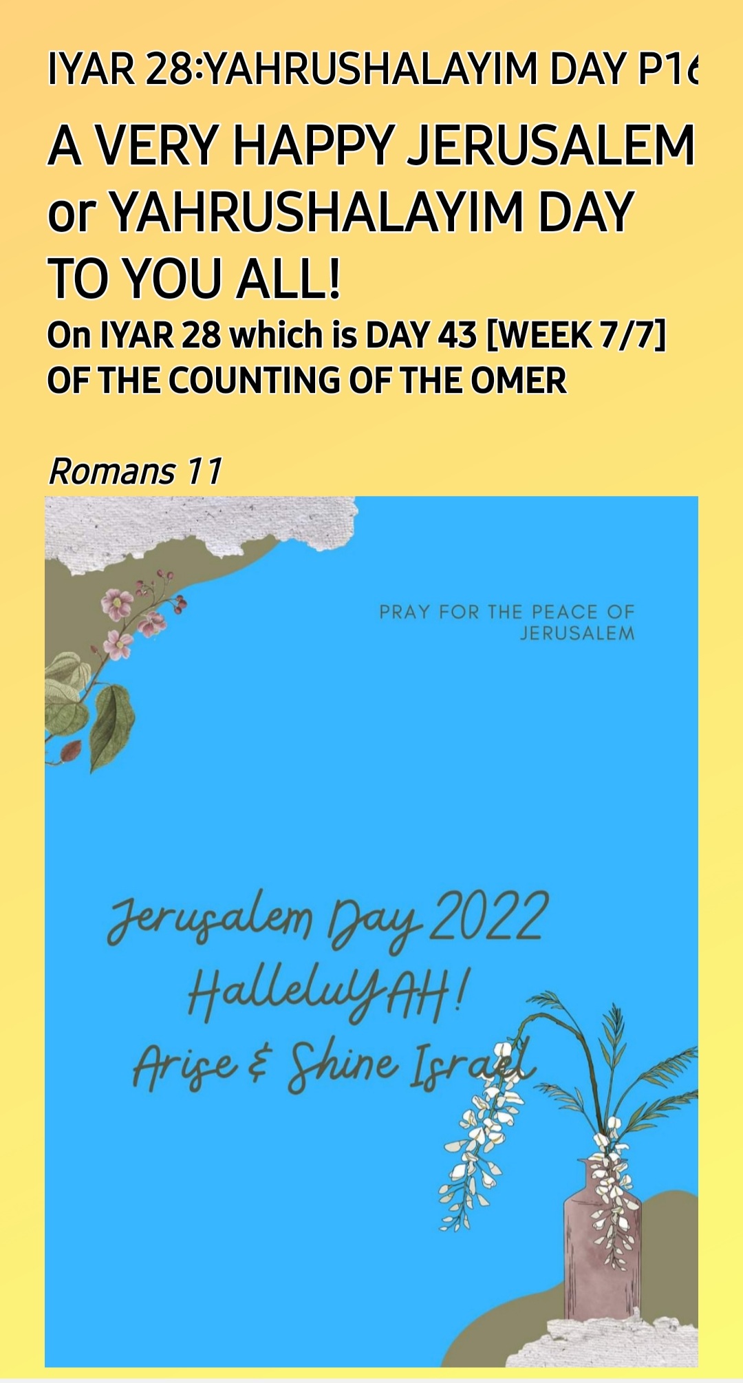 2. Yom YAHrushalayim (a.k.a Yerushalayim)/Jerusalem Day (28th Iyyar/Iyar)