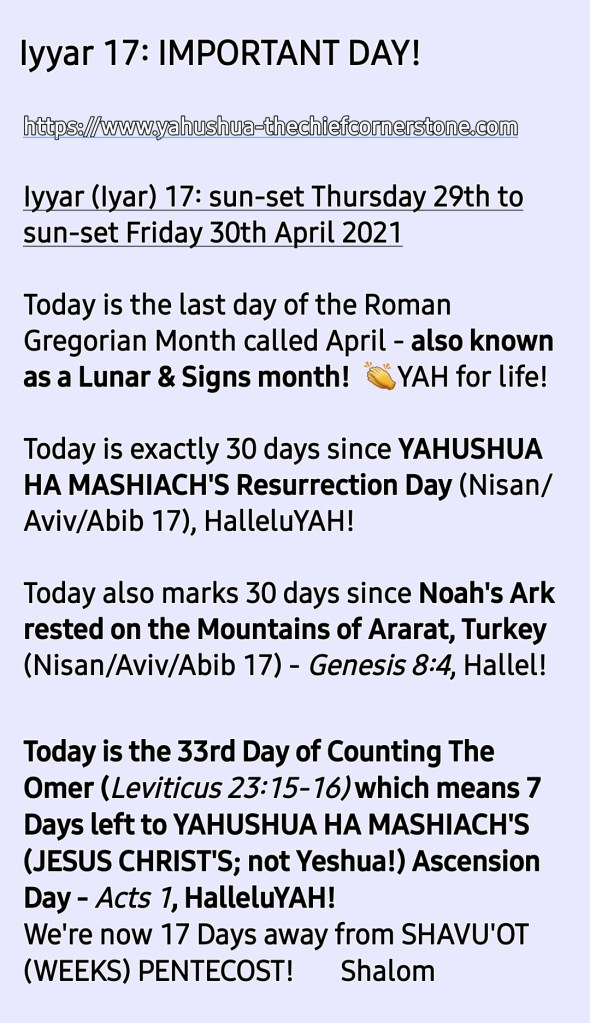 We were meant to do a Teaching today concerning YAHUSHUA’S Ressurrection and Noah’s Ark Resting on the Mountains of Ararat however unfortunately, it has not been possible. Will try to do it in the next couple of days.