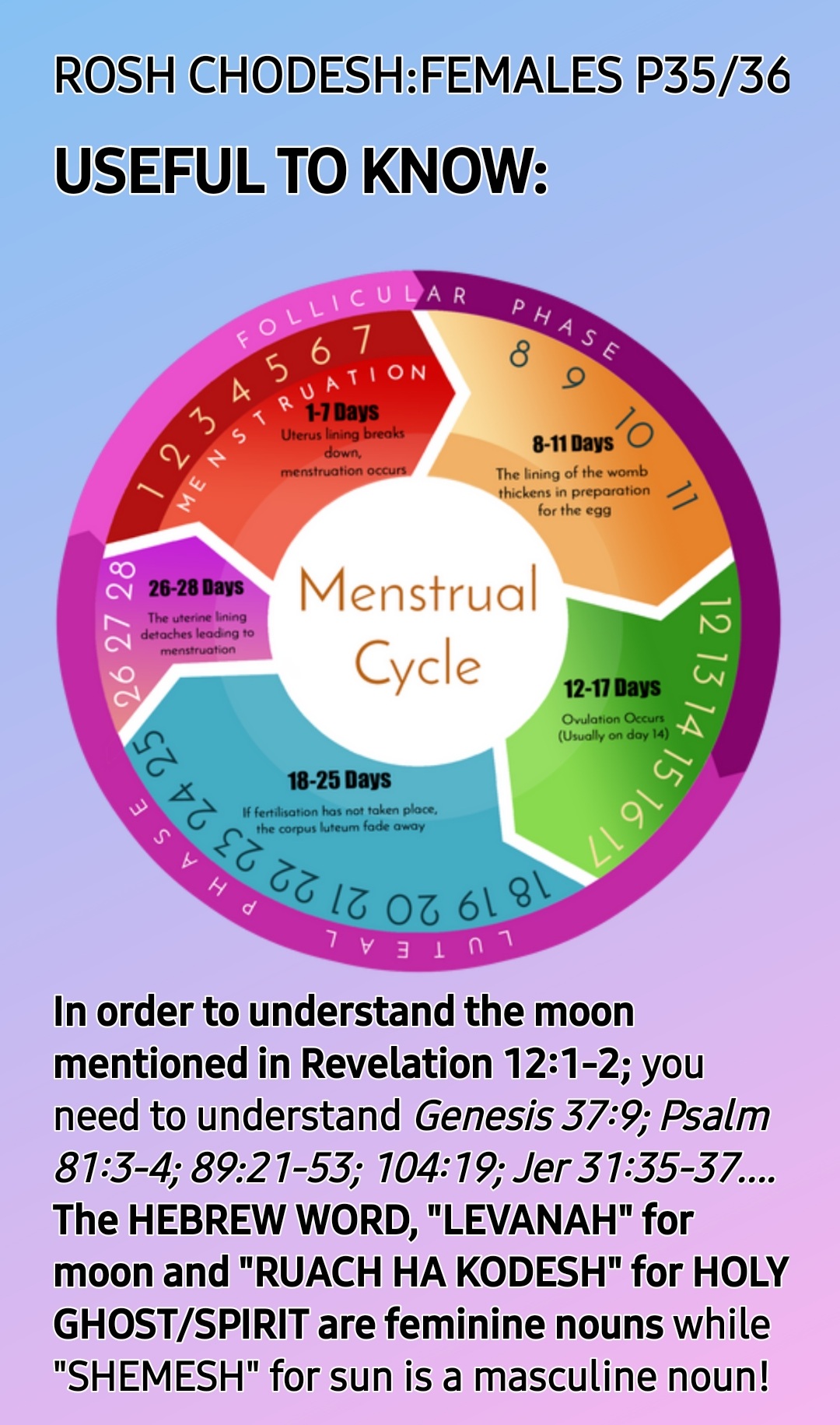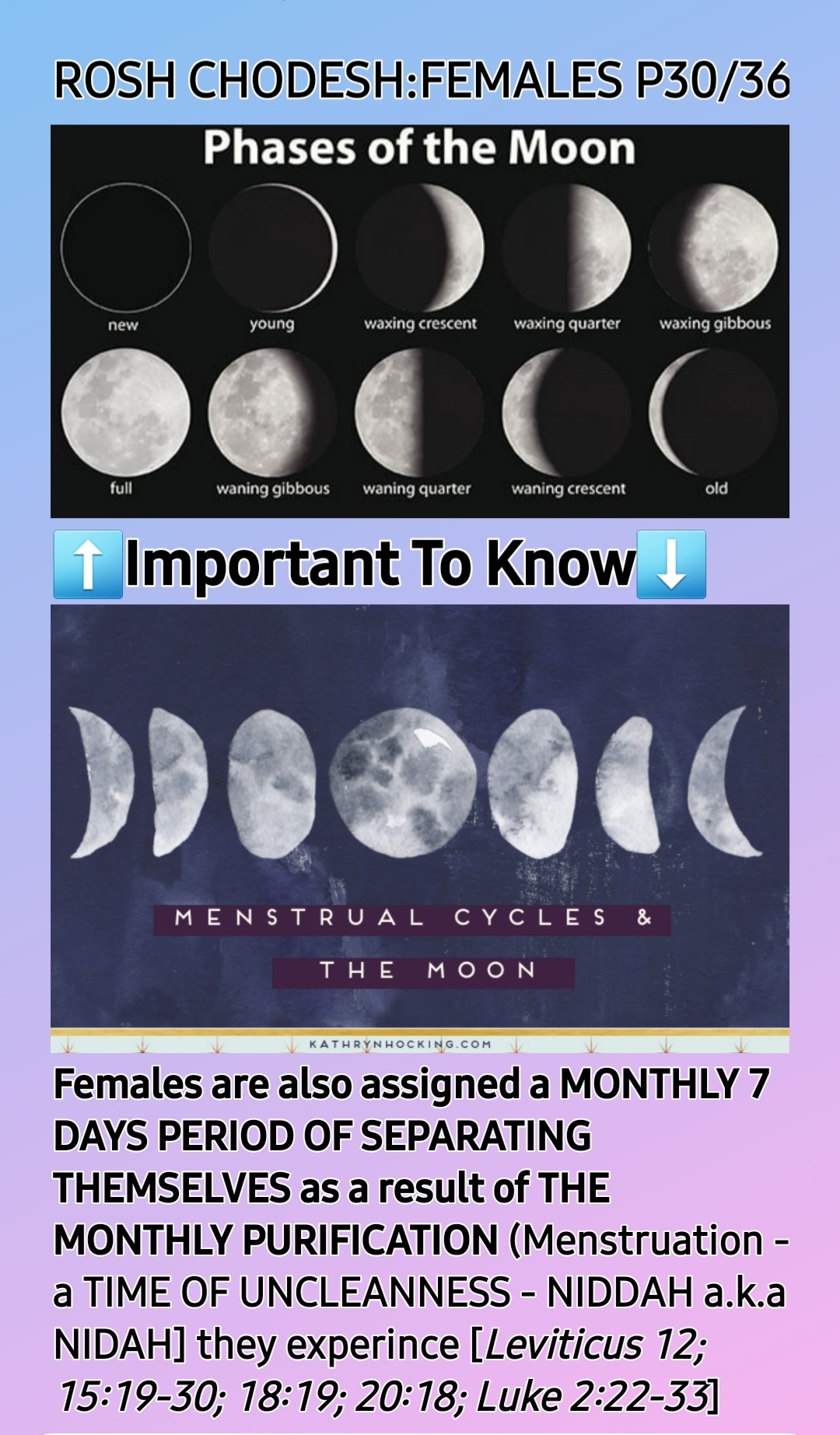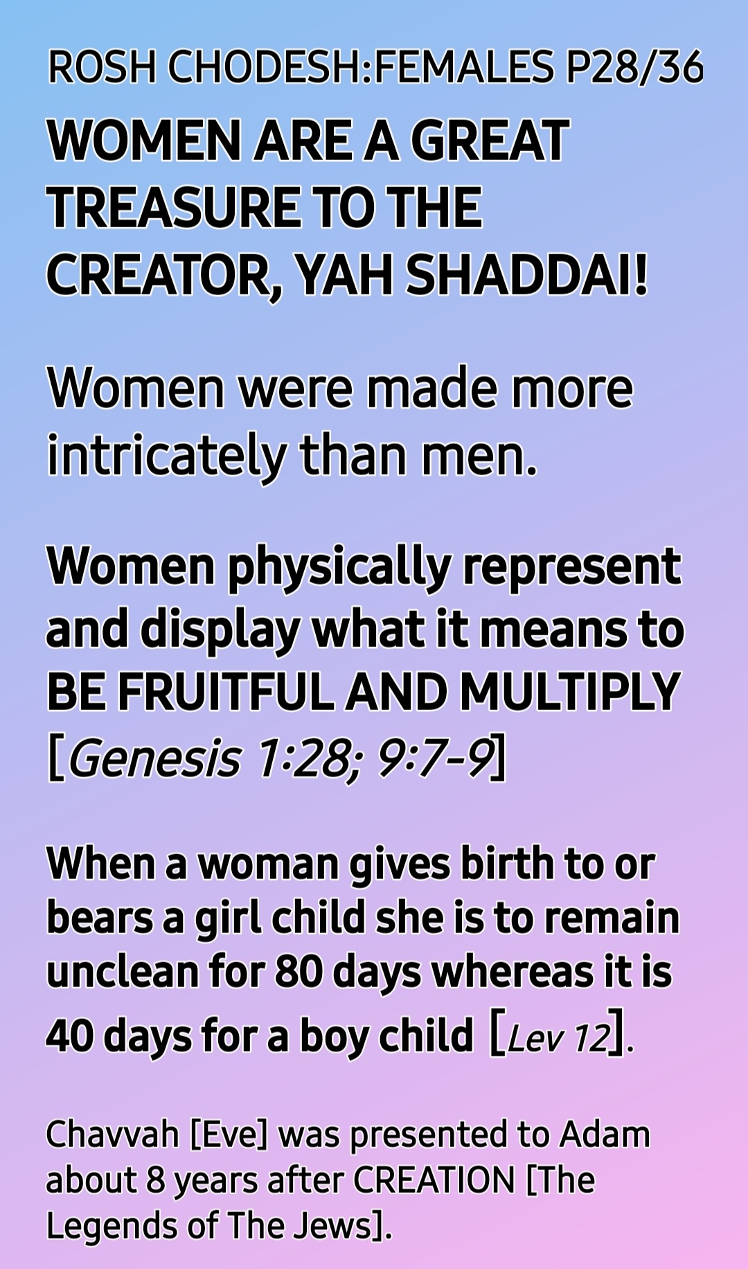 So, ROSH CHODESH [HEAD OF THE MONTH] IS BOTH WOMEN’S DAY AND MOTHERS’ DAY, the only HOLY One Instituted by THE CREATOR, YAH SHADDAI!