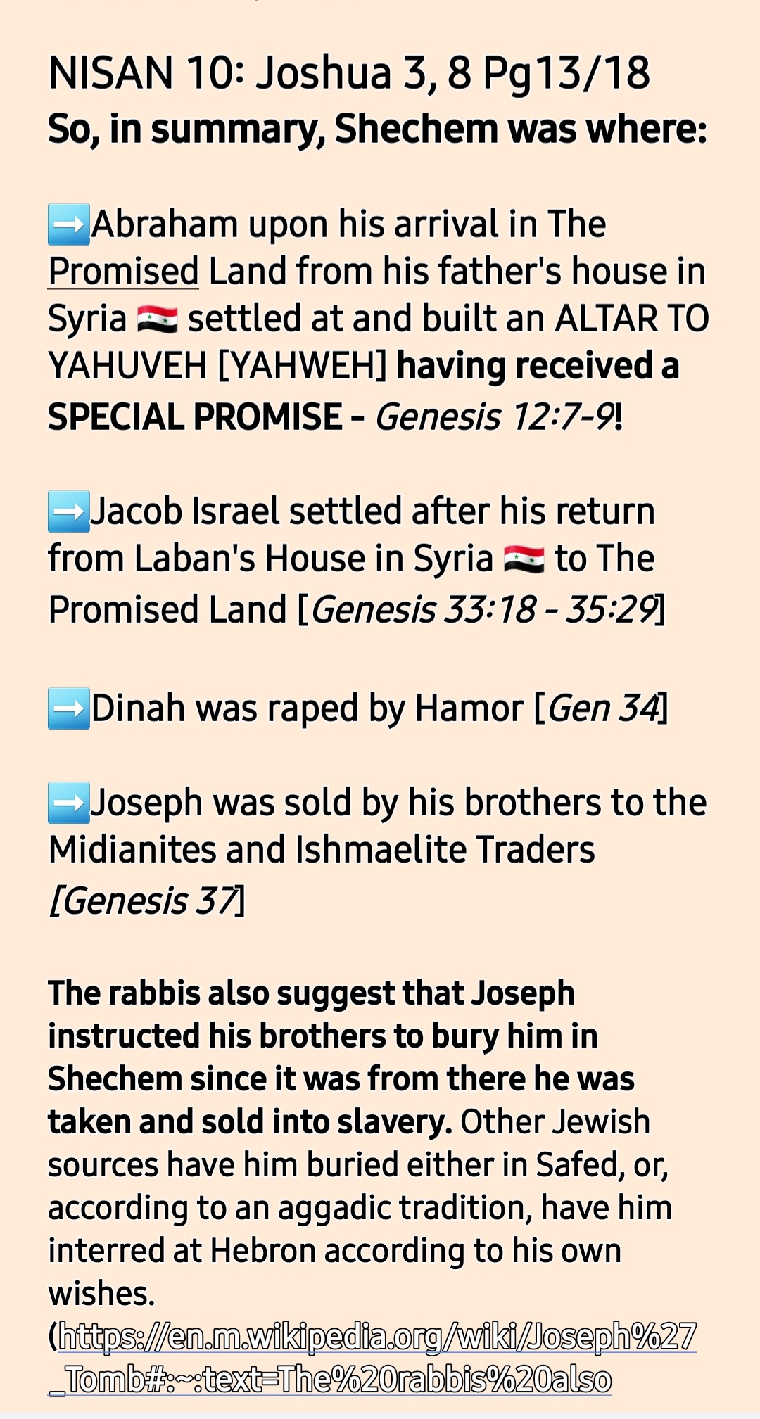 ➡️Shechem was the place where Joseph’s remains were buried (Joshua 24:32).