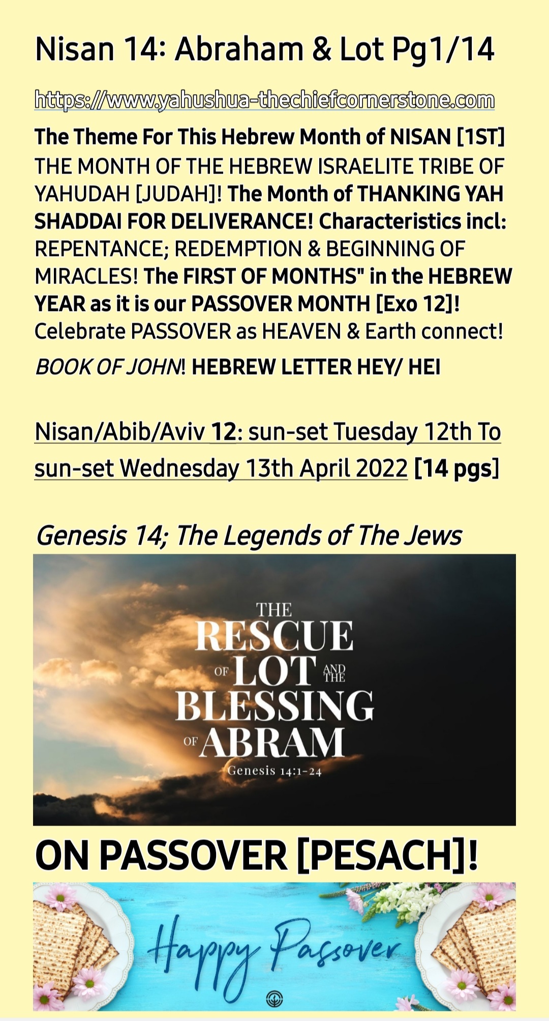AUDIO: Recording 381: PT4: Adam, Abraham & Lot on PASSOVER, etc [Tues 12-4-22/Nisan 11]