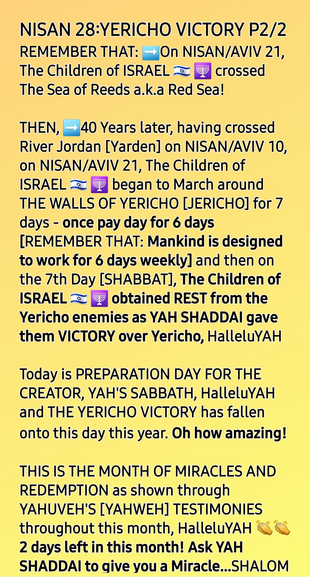 AUDIO: Recording 401: NISAN/AVIV 28: JERICHO VICTORY & PREP FOR SHABBAT ACHAREI MOT; Circumcision; MIRACLES