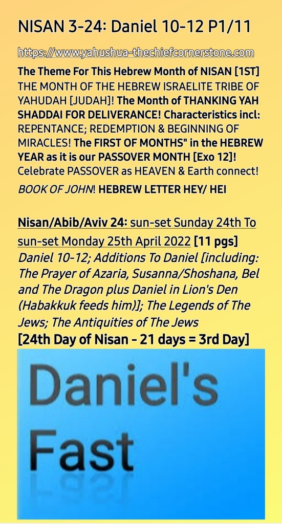 Daniel’s Fast occurred during the HEBREW MONTH called NISAN/AVIV!