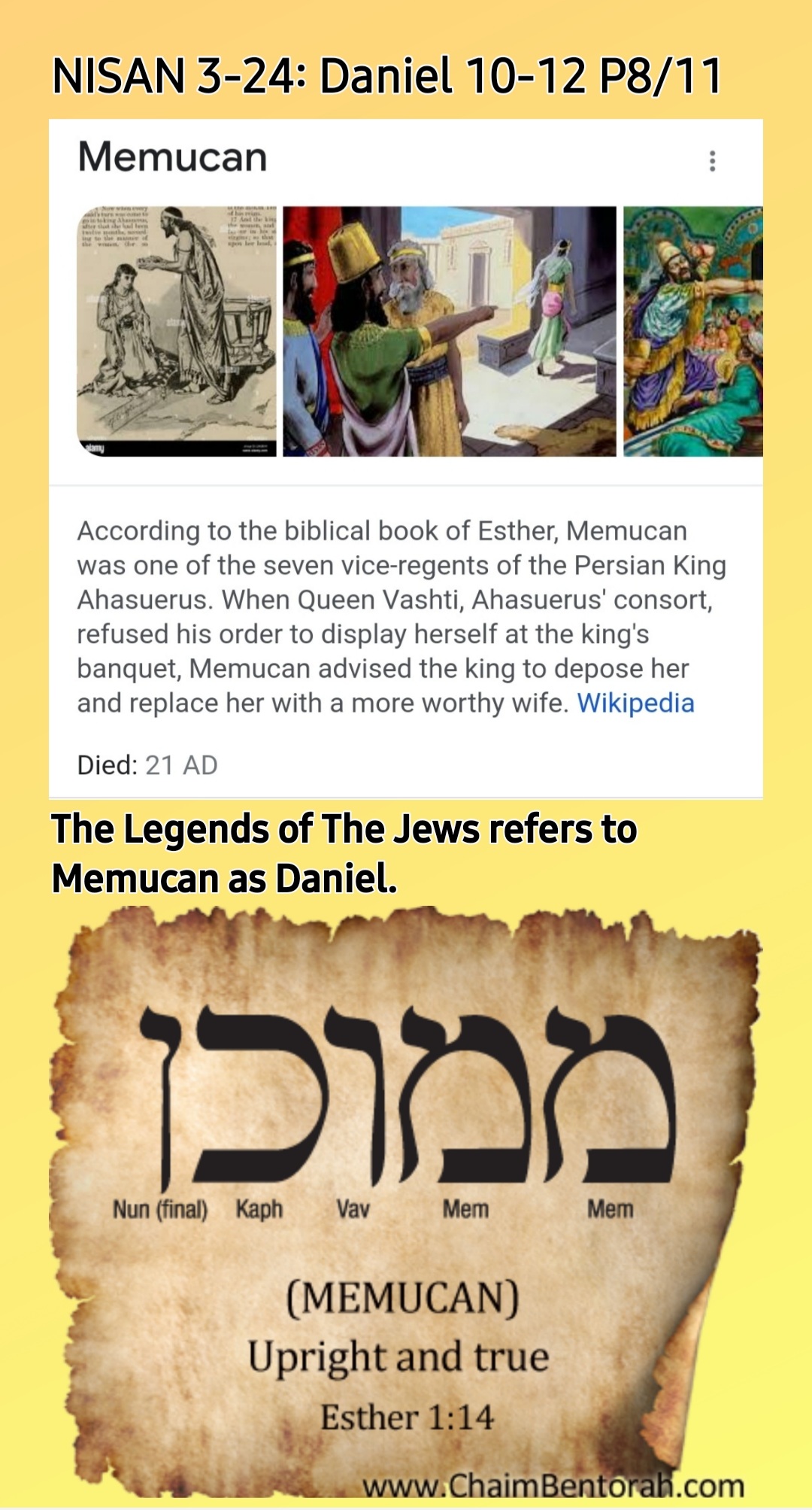 *➡️➡️➡️The matter of Daniel appearing in THE BOOK OF ESTHER as Memucan and again as Hathak a.k.a Hathach is quite or somewhat confusing* as Hathach ends up executed by Haman and yet Daniel continues to live even after King Achashverosh a.k.a Ahasuerus a.k.a Xerxes and all the way until Achashverosh’s successors including Cyrus and Darius.