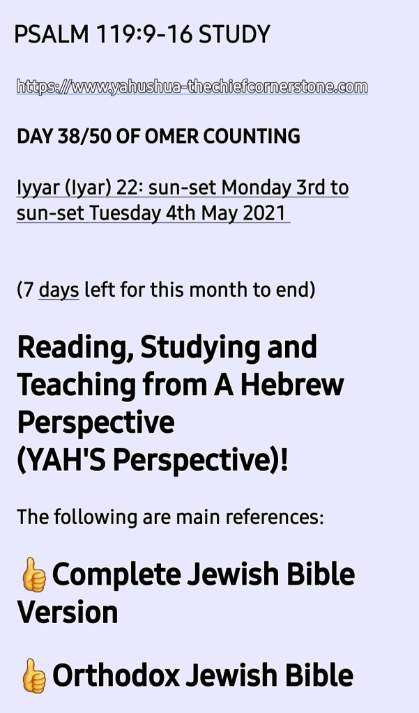 Part 2: Verses 9-16 Studying Psalm 119 this OMER COUNTING (Pesach to Shavu’ot) SEASON (April to May 2021)