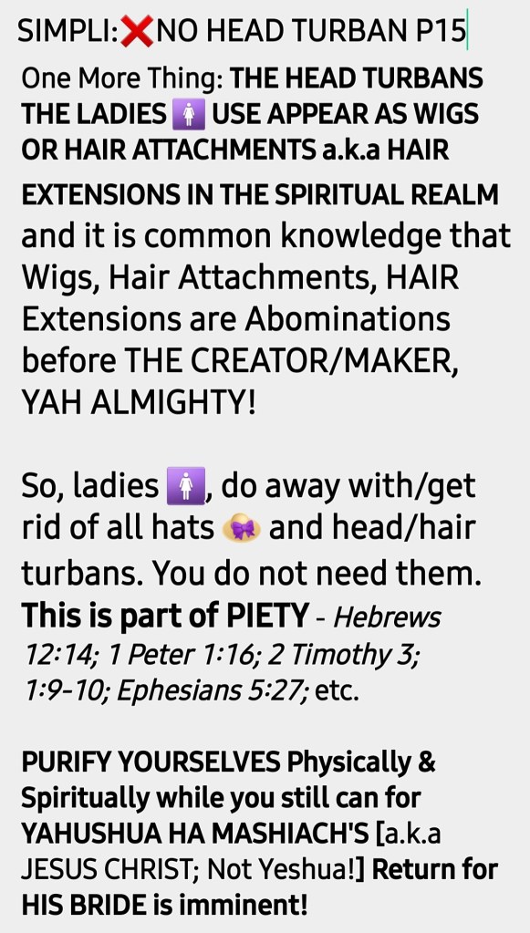 BE ENCOURAGED LADIES 🚺 . The world 🌎 will laugh at you, mock you, ridicule you, attack you for Obeying YAH’S COMMANDMENTS but the most important thing is to obey your MAKER/ CREATOR, YAH! HE is to be fear because HE can kill and cast our bodies into hell fire for eternity! Luke 12:5; Matthew 10:28; 2 Timothy 1:7; Deuteronomy 28:1-15; 1 Samuel 15:22; etc. TAKE JOY IN WHAT PLEASES YOUR MAKER, YAH ALMIGHTY!