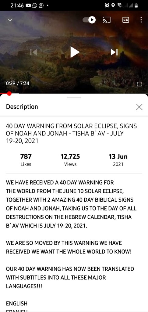 Video: 40 DAY ⚠️ WARNING ⚠️ FROM SOLAR ECLIPSE, SIGNS OF NOAH AND JONAH – TISH B’AV – July 19-20 2021