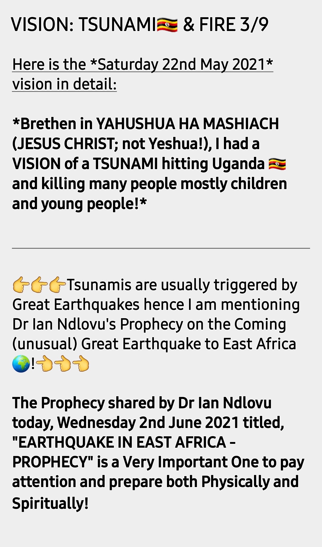 Video: EARTHQUAKE IN EAST AFRICA – Prophecy (Released on 02/06/2021)