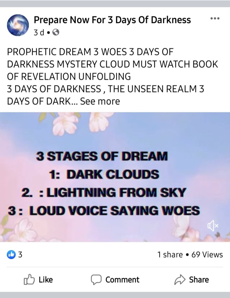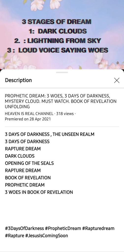 PROPHETIC DREAM 3 WOES 3 DAYS OF DARKNESS MYSTERY CLOUD MUST WATCH BOOK OF REVELATION UNFOLDING