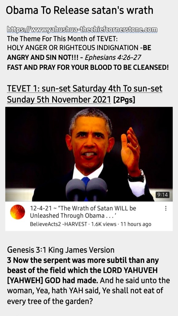 The Wrath of Satan WILL be Unleashed Through ObamaDECEMBER 4, 2021