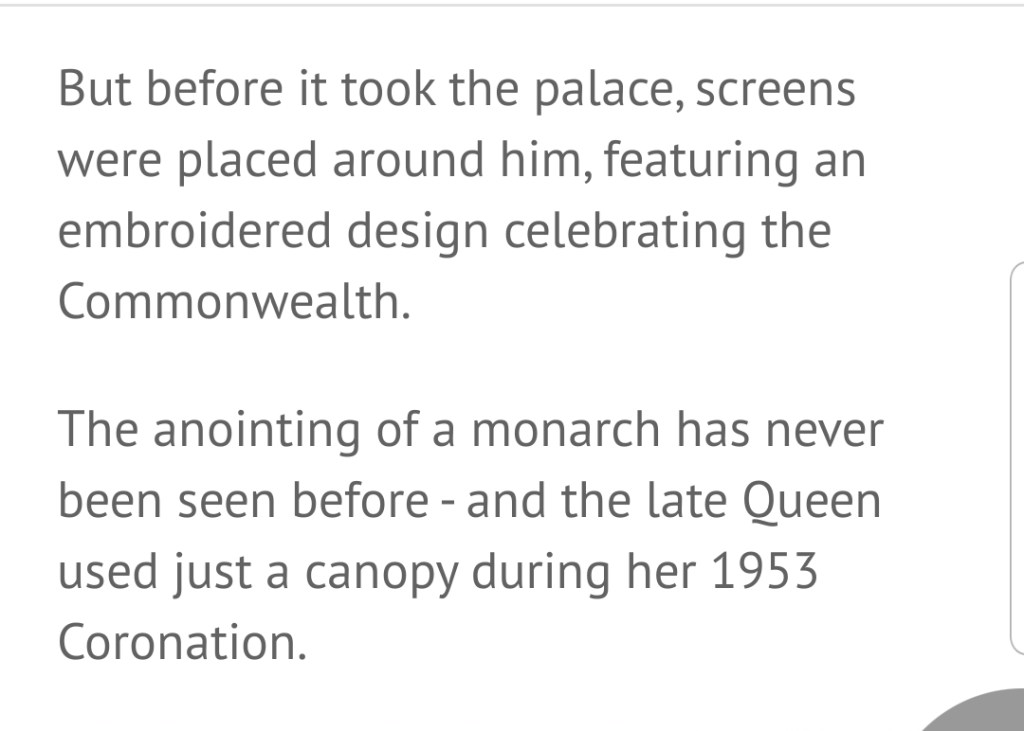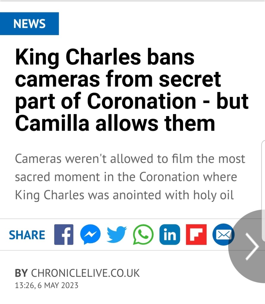 King Charles III Nearly Shape-Shifted During his Corona-tion : Why did Charles back the congregation? Why hide when being anointed with the so-called “holy oil”? What exactly is there to hide?