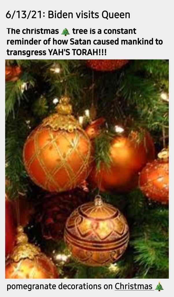 👉👉👉The various coloured balls placed on the Christmas 🎄 trees as decorations are representative of Pomegranates which is the forbidden 🚫 fruit in the Garden of Eden!