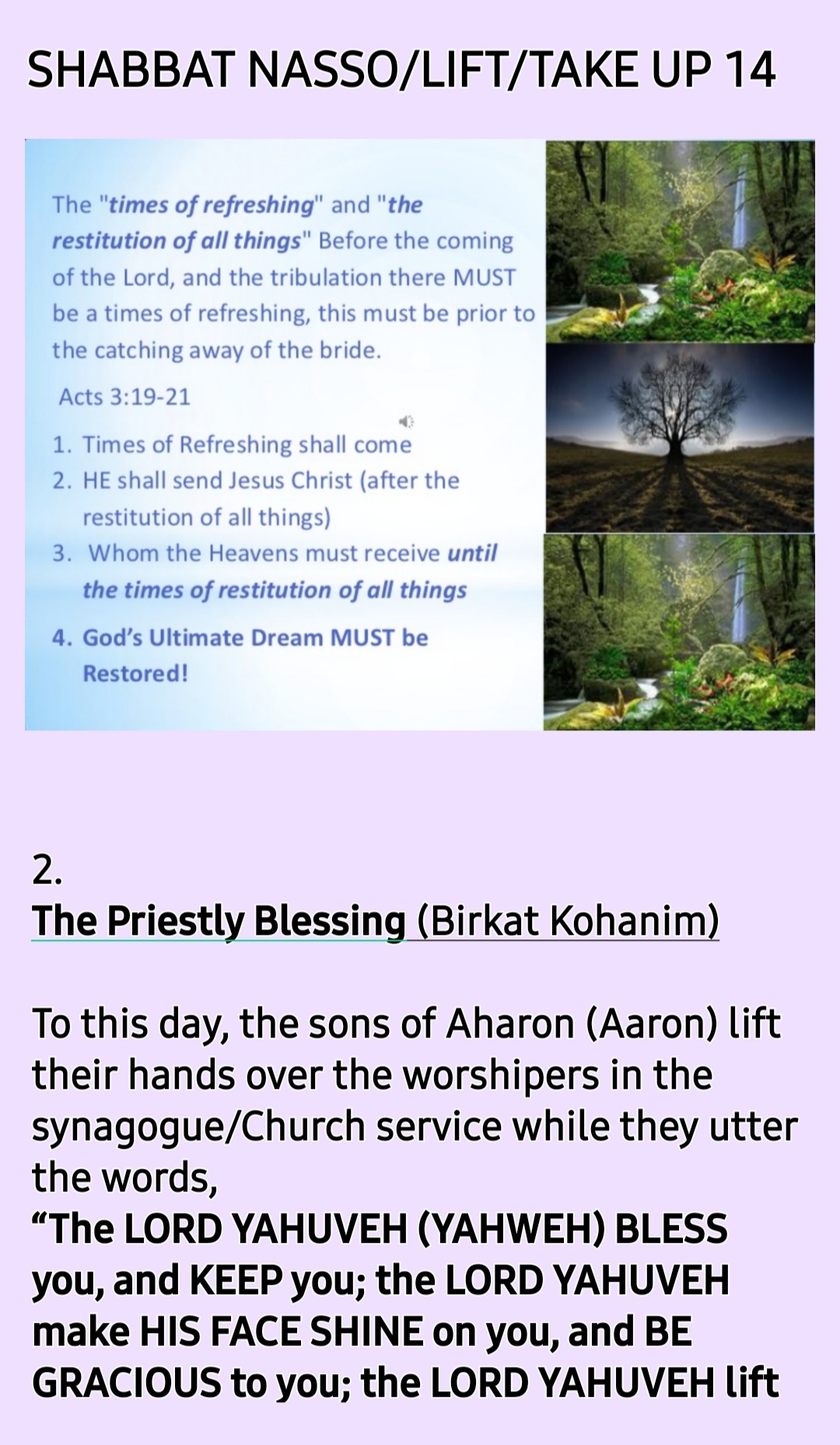 6 closes with the immortal words of the priestly blessing, a commandment for the sons of Aaron to bless Israel. To this day, the sons of Aaron lift their hands over the worshipers in the synagogue service while they utter the words, “The LORD bless you, and keep you; the LORD make His face shine on you, and be gracious to you; the LORD lift up His countenance on you, and give you peace” (Numbers 6:24-26).