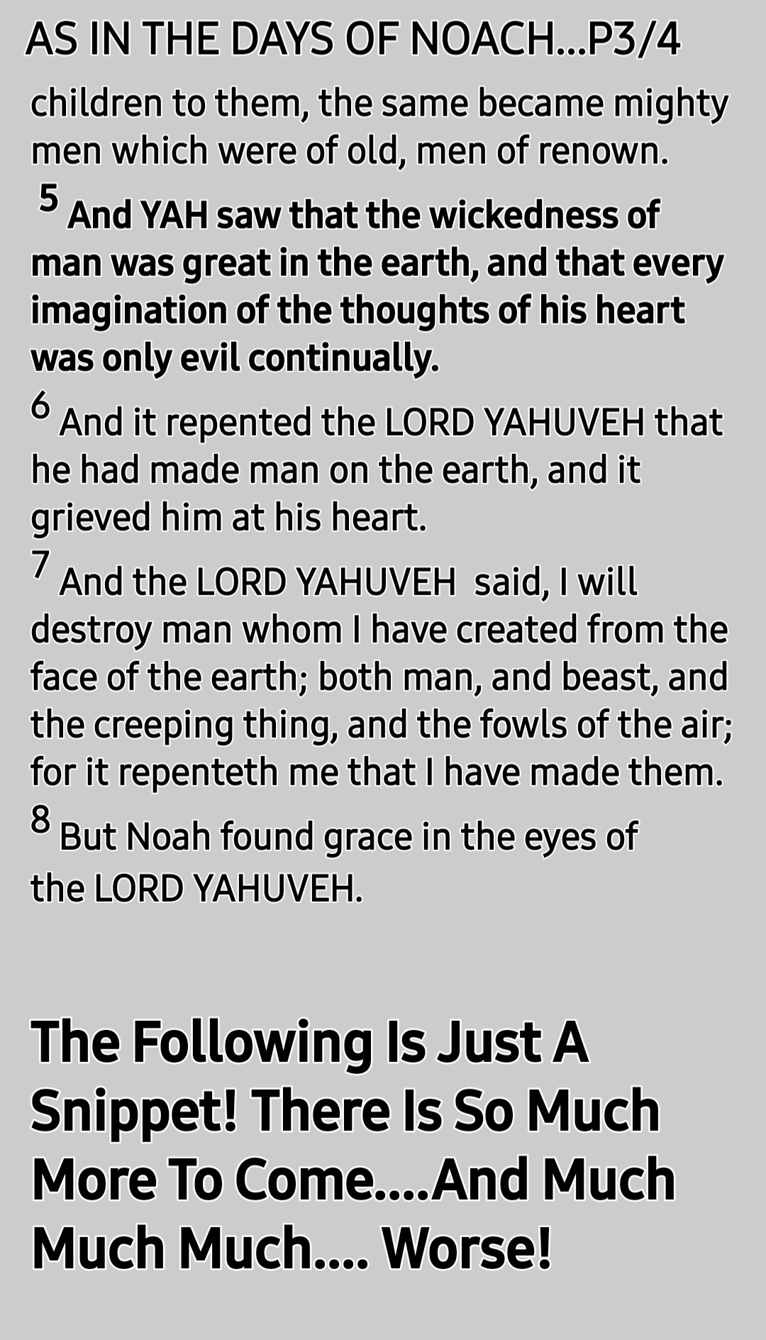 Apologies for the silence in part of this final audio. Had no idea this was happening. Had run out of space. So not recording was made during the rest of the audio. It is very unfortunate. IT IS WELL, IN YAHUSHUA HA MASHIACH’S [a.k.a JESUS CHRIST; not Yeshua!] NAME, AMEN!