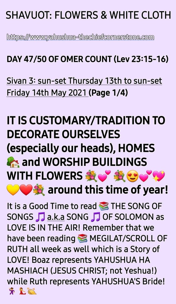 Flowers + Greenery & âSHAVUâOT/WEEKS/PENTECOSTâ