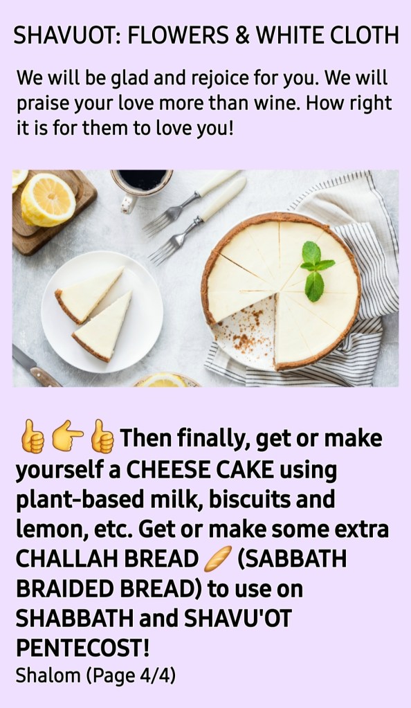 Diary products/Cheesecake & âSHAVUâOT/WEEKS/PENTECOSTâ