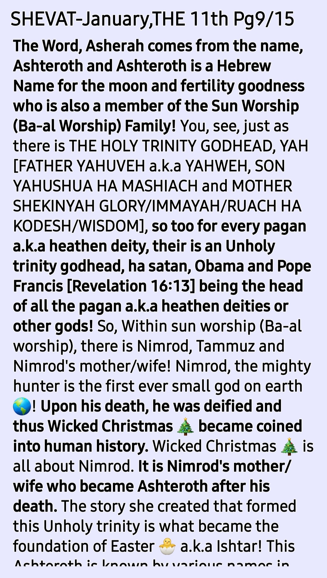 SHALOM! I am Brother Ade Israel and my wife is Sister Perpetua Shulamit. This is an online MESSIYAHNIC [MESSIANIC] HEBREW [a.k.a Jewish] PENTECOSTAL PROPHETIC MINISTRY with a HEALING/RESTORATION focus. See our TESTIMONY, VISION and MISSION STATEMENT Sections for more information on this. Welcome to our site [HOLY TEMPLE OF THE CREATOR, YAH SHADDAI without walls] created for PREACHING YAH'S GOSPEL [Matthew 28:18-20] and Sharing CRUCIAL END TIME TRUTHS [John 14:6; 8:32; Hosea 4:6]. *Please NOTE that we do not call ourselves nor anyone else who is a believer in and follower of THE ONE and ONLY TRUE MESSIAH [MASHIACH]/SAVIOUR/REDEEMER /DELIVERER who is popularly known worldwide as JESUS CHRIST [and Iesous, Jesu, Yesu, Yethu, etc] "Christian"* because we have learned through [HOLY] REVELATION from THE CREATOR/MAKER, YAH SHADDAI based on Malachai 1:1-5 and Romans 9:12-14 and Deuteronomy 12:29-32; Jeremiah 10; Ezekiel 8; etc that the terms, "Christian" and "Christianity" are Roman Vatican (Esau/Edom/Idumea) terms. *"Christian" (a tax bracket code person) actually or in fact means "A follower of the Anti-Messiah a.k.a Anti-Christ system* of Sin a.k.a Wickedness a.k.a TORAHlessness a.k.a LAWlessness System mention in 2 Thessalonians 2. *"Christianity" (a tax bracket code faith) a.k.a "Christian-Anity" is "the Vaticanisation of the Acts 2 Apostollic Foundation of Worshipping THE ONE TRUE GOD, YAH SHADDAI hence what is abominable to THE CREATOR/MAKER is widely acceptable in the name of 'the law has been done away with through nailing it to the cross', for example, Christianity encourages eating pig meat (pork, ham, bacon, etc) which is abomination as per Leviticus 11".* *Swine is a symbol of pig-mentation (skin colour) and demons love pig-mentation. Also, swine were worshiped as a deity in that location where YAHUSHUA HA MASHIACH [a.k.a JESUS CHRIST] cast the principality called "legion" out.* NOTE how the Romans introduced, established and emphasise "Easter ham" a.k.a Ishtar ham. they made it a tradition to eat pig meat 🐖 🐷 🐽 🐗 🐖 🐷 🐽 🐗 🐖 on the so-called Resurrection day of Jesus Christ, Why??? Pig meat is abomination to the LORD YAHUVEH and YAHUSHUA therefore pollutes YAH'S [GOD'S] TEMPLE (our bodies)! The Vatican is a den of demons and we are not of Rome/Esau!!!! Also, the term, "religion" = relagre = to bind back! Sadly, all roads lead back to Rome 🇮🇹 and The Vatican 🇻🇦. *Also, sadly, many of THE HOLY BIBLICAL SCRIPTURES have been Romanised and Vaticanised hence THE CREATOR/MAKER, YAH SHADDAI is calling us back to THE HEBREW ROOTS OF OUR FAITH IN HIM, HalleluYAH!* So, we call ourselves THE ORIGINAL TERM used before Roman and The Vatican changed/altered things which is: "MESSIYAHNIC [MESSIANIC] HEBREWS a.k.a JEWS"! We believe in plus followe in the footsteps of THE ONE and ONLY TRUE MESSIYAH [MESSIAH] as led by RUACH HA KODESH [HOLY SPIRIT; Not Ghost!!!] are in love with THE TORAH/LAW as per Joshua 1:8; Psalm 1; 119; Matthew 5:17-20; Colossians 2:16-17; etc. We believe in John 3:16; Romans 6:23; Isaiah 1:18-20 Matthew 28:18-20; etc as well as Acts 2; 8; etc: Genuinely Believe, Confess and Be Baptised by Immersion In Water followed➡️ by Immersion In RUACH HA KODESH then Daily Work Out Your SALVATION With Fear and Trembling [Philippians 2:12-16] while endeavouring To Be HOLY AS YAH Is HOLY [Leviticus; 1 Peter 1:16; Hebrews 12:14] and Bearing Many GOOD FRUIT FOR YAH SHADDAI [John 15; Galatians 5] !!! Once again, Welcome to our site [HOLY TEMPLE OF THE CREATOR, YAH SHADDAI without walls] created for PREACHING YAH'S GOSPEL [Matthew 28:18-20] and Sharing CRUCIAL END TIME TRUTHS [John 14:6; 8:32; Hosea 4:6]. ➡️This is our GETTR link [GETTR is the uncensored version of Twitter, just so you know] : https://gettr.com/user/yahushua7 ➡️We also have a *TELEGRAM Channel* [uncensored alternative to WhatsApp] and ➡️*MeWe* [uncensored alternative to Facebook and Instagram]! ➡️Here is our donation link if you please [if you wish to be a BLESSING to us and others in need worldwide through this online Ministry]: 📌https://www.paypal.me/AdeIsrael and/or 📌https://www.paypal.me/PNAMUTEBI ➡️Here is our donation page which explains what donations are for, if you please: https://yahushua-thechiefcornerstone.com/donations/ ➡️➡️➡️We are called and appointed by THE CREATOR, YAH SHADDAI to raise awareness of "THE JEWISH-NESS OF THE MESSIYAH [MESSIAH]" who is popularly known as JESUS CHRIST OF NAZARETH and how this affects THE BODY OF YAHUSHUA HA MASHIACH! ➡️➡️➡️THE HOLY TRINITY GODHEAD WHOM we worship are known as: 📌➡️1. GOD THE FATHER, ABBA YAHUVEH'S (a.k.a YAHWEH); 📌➡️2. GOD THE SON, YAHUSHUA [a.k.a YAHSHUA] HA MASHIACH and 📌➡️3. GOD THE MOTHER [IMMAYAH] a.k.a GOD THE HOLY SPIRIT (Not Ghost!) [RUACH HA KODESH] a.k.a SHEKINYAH GLORY [Isaiah 60:1-2; etc] a.k.a WISDOM [Proverbs 8:22-31]! Please NOTE that 2 Corinthians 13:14 is evidence of the existence of THE HOLY TRINITY GODHEAD [YAHUVEH – FATHER; YAHUSHUA HA MASHIACH – SON; IMMAYAH a.k.a SHEKINYAH GLORY – MOTHER] just as Revelation 16:13 read alongside Revelation 13 is the evidence of the existence of ⚠️the Unholy Trinity godhead (lucifer – father, Barrack Hussein Obama – son and Pope Francis a.k.a Jorge Mario Bergoglio – mother)!⚠️ There is a crucial and urgent need for increased ACKNOWLEDGEMENT/RECOGNITION and AWARENESS of the MESSIYAH [MESSIAH] JESUS CHRIST'S [Not Yeshua! ; Not YeshaYAHU!!!] HEBREW-NESS or JEWISHNESS plus how it affects us, mankind who desire to dwell with HIM for eternity. *The Left Behind during and after THE FIRST HOLY CATCHING AWAY (Not "RAPTURE" which means rape) TO THE HEAVENS will be the most affected by this issue of THE NAME OF THE MESSIAH!* It will begin to take effect during The Upcoming 3 Days and Nights of Worldwide Gross Darkness [Amos 8:9-10; Joel 2:30-32; Matthew 12:38-42; Mark 8:12; etc]. See how people gen