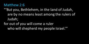 Judah; for out of you will come a ruler. who will shepherd my people Israel.’