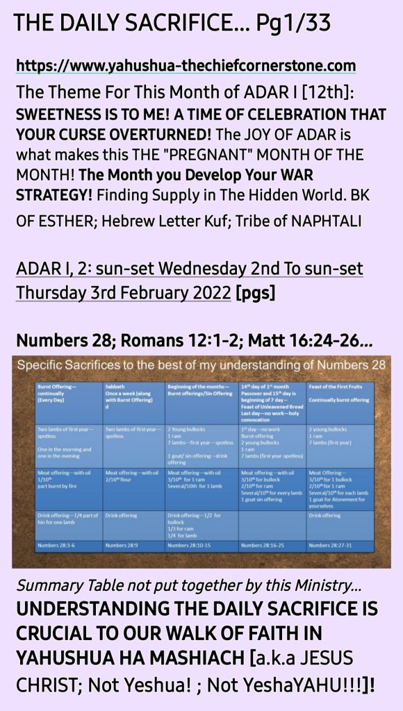 SHALOM! I am Brother Ade Israel and my wife is Sister Perpetua Shulamit. This is an online MESSIYAHNIC [MESSIANIC] HEBREW [a.k.a Jewish] PENTECOSTAL PROPHETIC MINISTRY with a HEALING/RESTORATION focus. See our TESTIMONY, VISION and MISSION STATEMENT Sections for more information on this. Welcome to our site [HOLY TEMPLE OF THE CREATOR, YAH SHADDAI without walls] created for PREACHING YAH'S GOSPEL [Matthew 28:18-20] and Sharing CRUCIAL END TIME TRUTHS [John 14:6; 8:32; Hosea 4:6]. *Please NOTE that we do not call ourselves nor anyone else who is a believer in and follower of THE ONE and ONLY TRUE MESSIAH [MASHIACH]/SAVIOUR/REDEEMER /DELIVERER who is popularly known worldwide as JESUS CHRIST [and Iesous, Jesu, Yesu, Yethu, etc] "Christian"* because we have learned through [HOLY] REVELATION from THE CREATOR/MAKER, YAH SHADDAI based on Malachai 1:1-5 and Romans 9:12-14 and Deuteronomy 12:29-32; Jeremiah 10; Ezekiel 8; etc that the terms, "Christian" and "Christianity" are Roman Vatican (Esau/Edom/Idumea) terms. *"Christian" (a tax bracket code person) actually or in fact means "A follower of the Anti-Messiah a.k.a Anti-Christ system* of Sin a.k.a Wickedness a.k.a TORAHlessness a.k.a LAWlessness System mention in 2 Thessalonians 2. *"Christianity" (a tax bracket code faith) a.k.a "Christian-Anity" is "the Vaticanisation of the Acts 2 Apostollic Foundation of Worshipping THE ONE TRUE GOD, YAH SHADDAI hence what is abominable to THE CREATOR/MAKER is widely acceptable in the name of 'the law has been done away with through nailing it to the cross', for example, Christianity encourages eating pig meat (pork, ham, bacon, etc) which is abomination as per Leviticus 11".* *Swine is a symbol of pig-mentation (skin colour) and demons love pig-mentation. Also, swine were worshiped as a deity in that location where YAHUSHUA HA MASHIACH [a.k.a JESUS CHRIST] cast the principality called "legion" out.* NOTE how the Romans introduced, established and emphasise "Easter ham" a.k.a Ishtar ham. they made it a tradition to eat pig meat 🐖 🐷 🐽 🐗 🐖 🐷 🐽 🐗 🐖 on the so-called Resurrection day of Jesus Christ, Why??? Pig meat is abomination to the LORD YAHUVEH and YAHUSHUA therefore pollutes YAH'S [GOD'S] TEMPLE (our bodies)! The Vatican is a den of demons and we are not of Rome/Esau!!!! Also, the term, "religion" = relagre = to bind back! Sadly, all roads lead back to Rome 🇮🇹 and The Vatican 🇻🇦. *Also, sadly, many of THE HOLY BIBLICAL SCRIPTURES have been Romanised and Vaticanised hence THE CREATOR/MAKER, YAH SHADDAI is calling us back to THE HEBREW ROOTS OF OUR FAITH IN HIM, HalleluYAH!* So, we call ourselves THE ORIGINAL TERM used before Roman and The Vatican changed/altered things which is: "MESSIYAHNIC [MESSIANIC] HEBREWS a.k.a JEWS"! We believe in plus followe in the footsteps of THE ONE and ONLY TRUE MESSIYAH [MESSIAH] as led by RUACH HA KODESH [HOLY SPIRIT; Not Ghost!!!] are in love with THE TORAH/LAW as per Joshua 1:8; Psalm 1; 119; Matthew 5:17-20; Colossians 2:16-17; etc. We believe in John 3:16; Romans 6:23; Isaiah 1:18-20 Matthew 28:18-20; etc as well as Acts 2; 8; etc: Genuinely Believe, Confess and Be Baptised by Immersion In Water followed➡️ by Immersion In RUACH HA KODESH then Daily Work Out Your SALVATION With Fear and Trembling [Philippians 2:12-16] while endeavouring To Be HOLY AS YAH Is HOLY [Leviticus; 1 Peter 1:16; Hebrews 12:14] and Bearing Many GOOD FRUIT FOR YAH SHADDAI [John 15; Galatians 5] !!! Once again, Welcome to our site [HOLY TEMPLE OF THE CREATOR, YAH SHADDAI without walls] created for PREACHING YAH'S GOSPEL [Matthew 28:18-20] and Sharing CRUCIAL END TIME TRUTHS [John 14:6; 8:32; Hosea 4:6]. ➡️This is our GETTR link [GETTR is the uncensored version of Twitter, just so you know] : https://gettr.com/user/yahushua7 ➡️We also have a *TELEGRAM Channel* [uncensored alternative to WhatsApp] and ➡️*MeWe* [uncensored alternative to Facebook and Instagram]! ➡️Here is our donation link if you please [if you wish to be a BLESSING to us and others in need worldwide through this online Ministry]: 📌https://www.paypal.me/AdeIsrael and/or 📌https://www.paypal.me/PNAMUTEBI ➡️Here is our donation page which explains what donations are for, if you please: https://yahushua-thechiefcornerstone.com/donations/ ➡️➡️➡️We are called and appointed by THE CREATOR, YAH SHADDAI to raise awareness of "THE JEWISH-NESS OF THE MESSIYAH [MESSIAH]" who is popularly known as JESUS CHRIST OF NAZARETH and how this affects THE BODY OF YAHUSHUA HA MASHIACH! ➡️➡️➡️THE HOLY TRINITY GODHEAD WHOM we worship are known as: 📌➡️1. GOD THE FATHER, ABBA YAHUVEH'S (a.k.a YAHWEH); 📌➡️2. GOD THE SON, YAHUSHUA [a.k.a YAHSHUA] HA MASHIACH and 📌➡️3. GOD THE MOTHER [IMMAYAH] a.k.a GOD THE HOLY SPIRIT (Not Ghost!) [RUACH HA KODESH] a.k.a SHEKINYAH GLORY [Isaiah 60:1-2; etc] a.k.a WISDOM [Proverbs 8:22-31]! Please NOTE that 2 Corinthians 13:14 is evidence of the existence of THE HOLY TRINITY GODHEAD [YAHUVEH – FATHER; YAHUSHUA HA MASHIACH – SON; IMMAYAH a.k.a SHEKINYAH GLORY – MOTHER] just as Revelation 16:13 read alongside Revelation 13 is the evidence of the existence of ⚠️the Unholy Trinity godhead (lucifer – father, Barrack Hussein Obama – son and Pope Francis a.k.a Jorge Mario Bergoglio – mother)!⚠️ There is a crucial and urgent need for increased ACKNOWLEDGEMENT/RECOGNITION and AWARENESS of the MESSIYAH [MESSIAH] JESUS CHRIST'S [Not Yeshua! ; Not YeshaYAHU!!!] HEBREW-NESS or JEWISHNESS plus how it affects us, mankind who desire to dwell with HIM for eternity. *The Left Behind during and after THE FIRST HOLY CATCHING AWAY (Not "RAPTURE" which means rape) TO THE HEAVENS will be the most affected by this issue of THE NAME OF THE MESSIAH!* It will begin to take effect during The Upcoming 3 Days and Nights of Worldwide Gross Darkness [Amos 8:9-10; Joel 2:30-32; Matthew 12:38-42; Mark 8:12; etc]. See how people gen