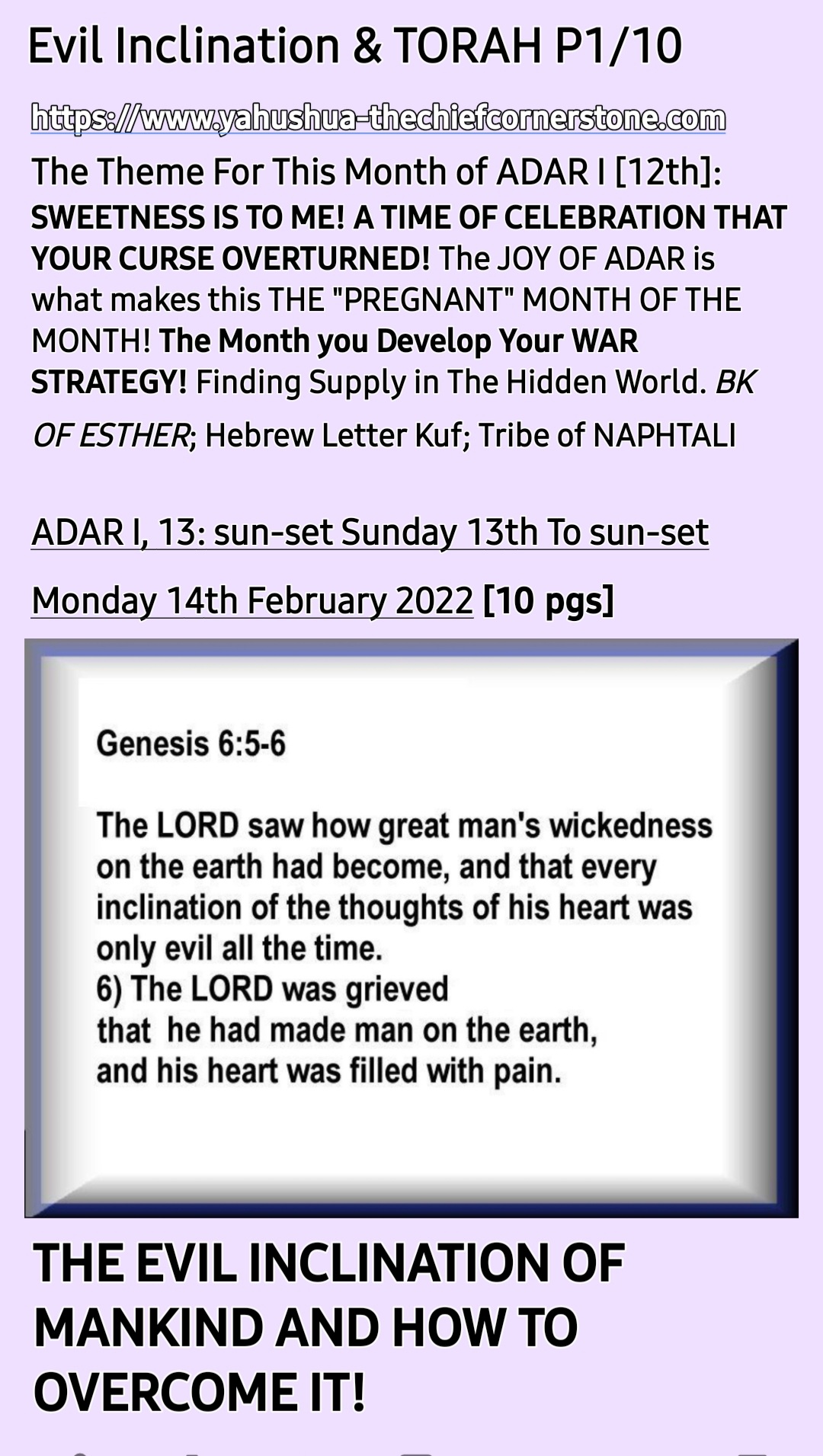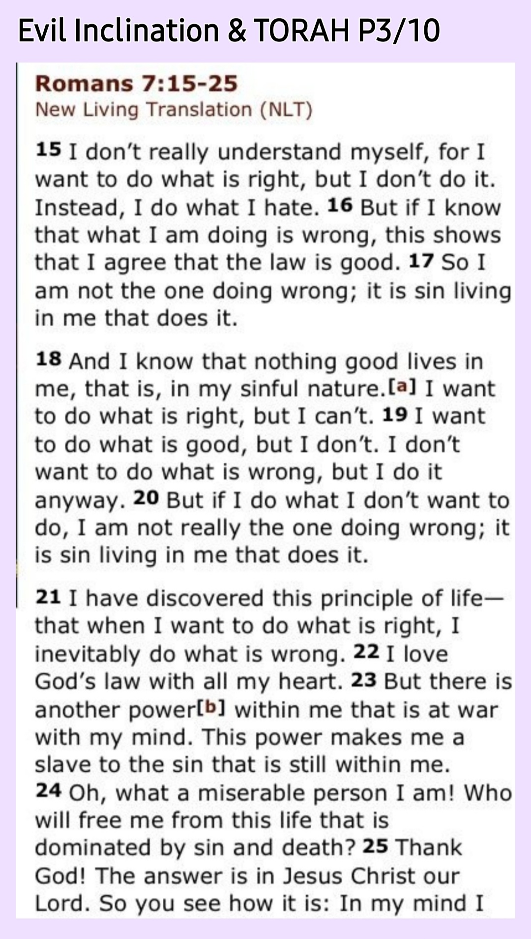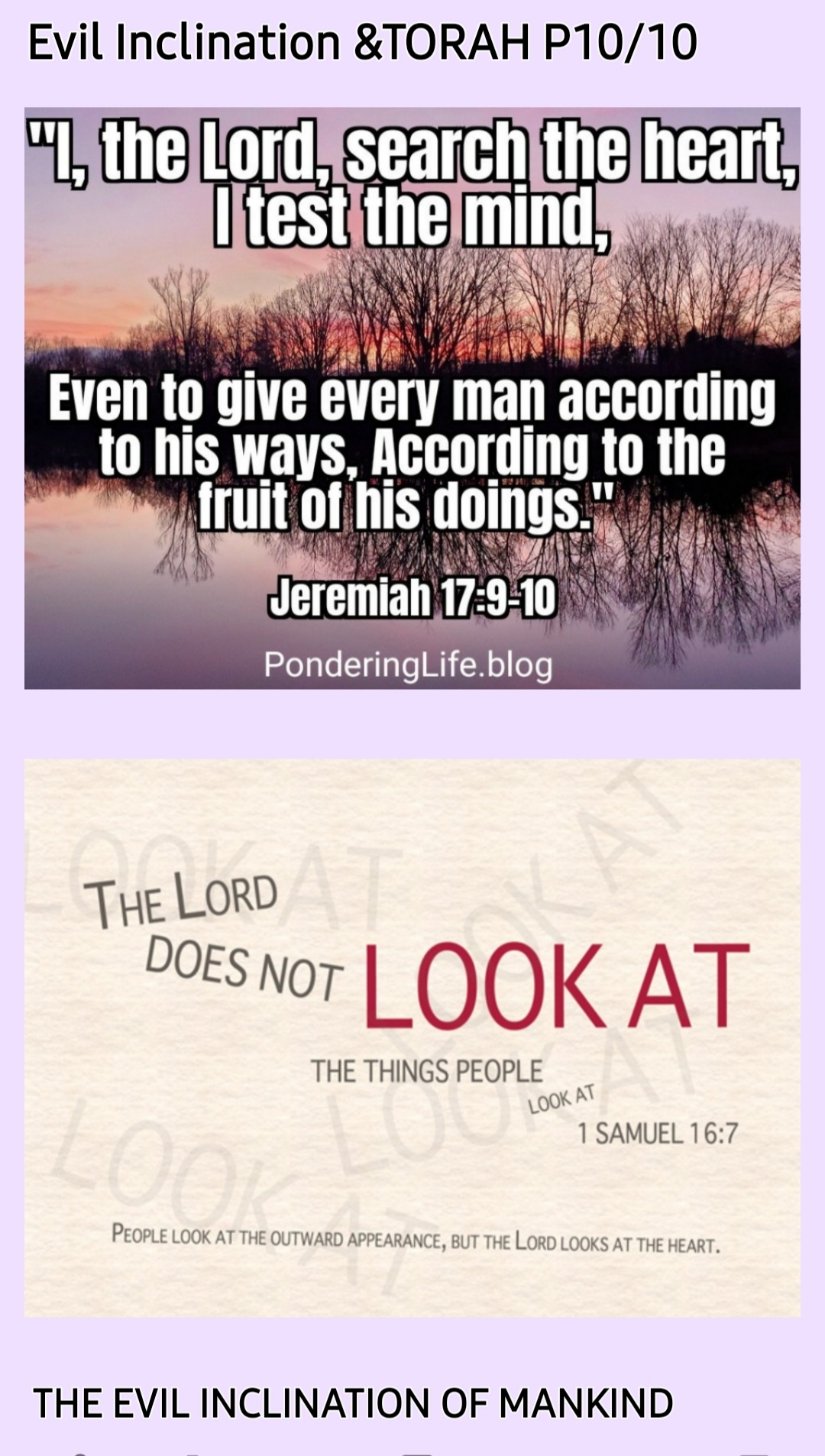 So, the evil inclination of mankind in the flesh [Genesis 6:5; 8:21; Romans 7:15-25; Jeremiah 17:9-10] has a SOLUTION and can be overcome!