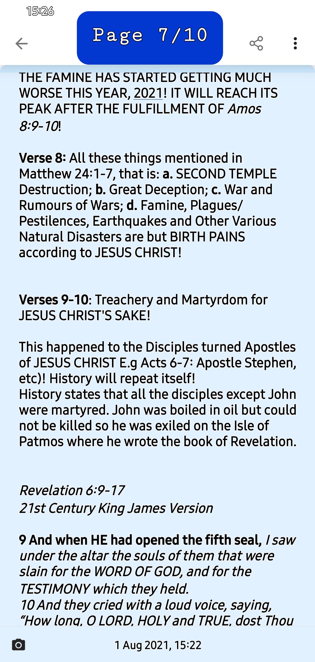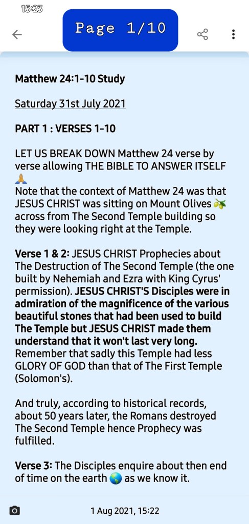 Here is a part study of Matthew 24. Apologies. Struggled to get back to it so as to Complete the STUDY since Sunday 31st July 2021.