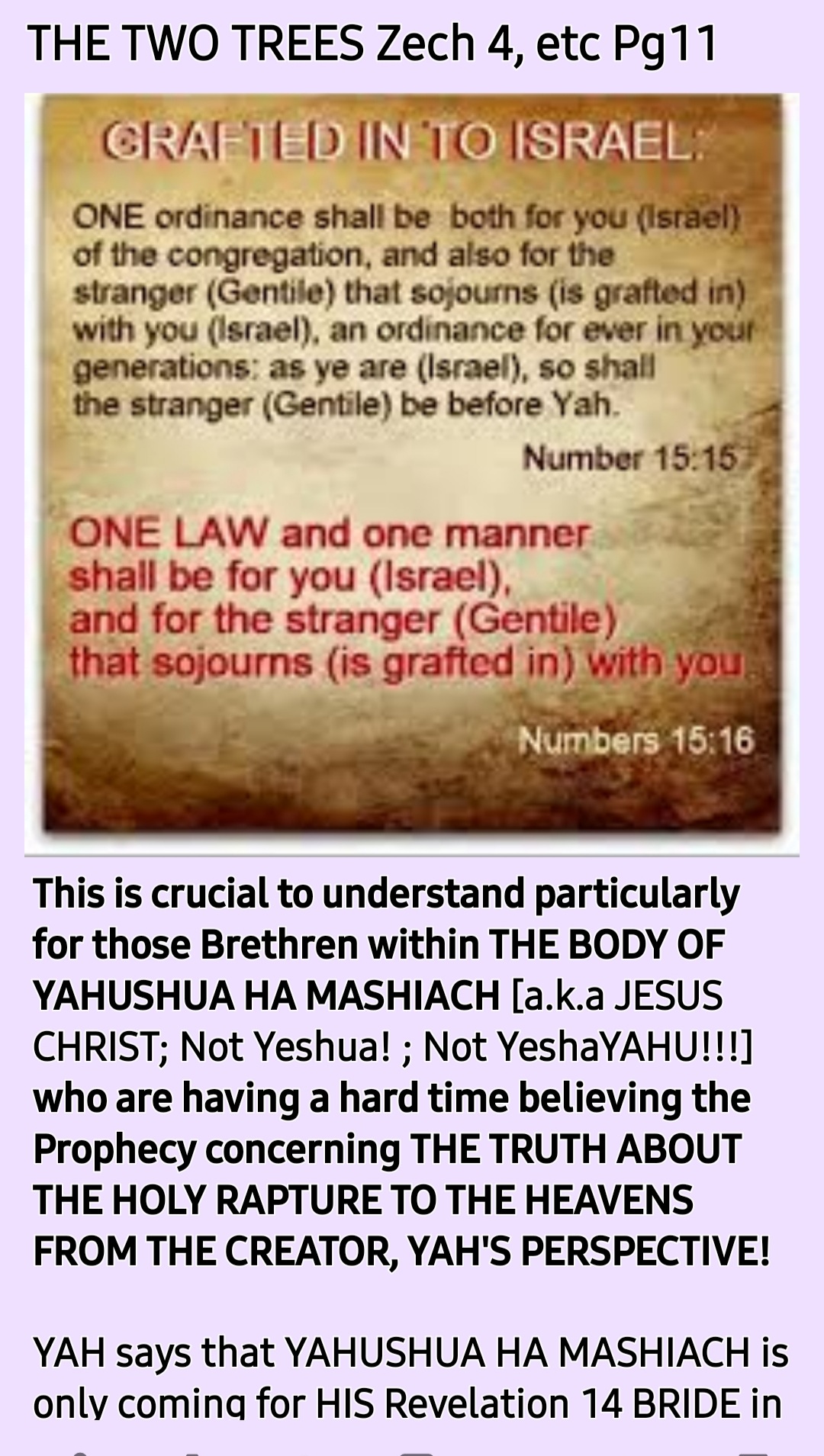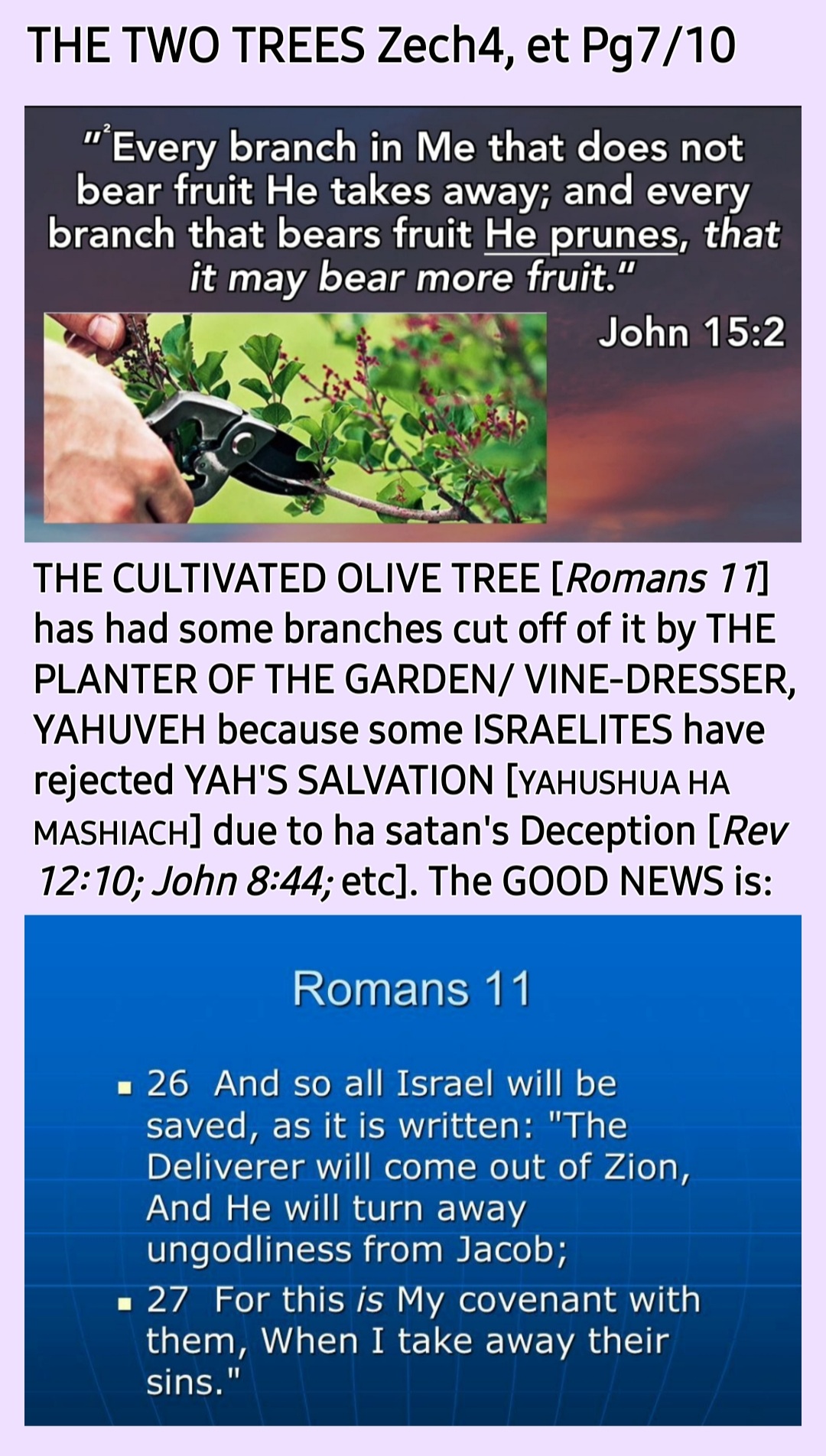 *THE TWO TREES OF Genesis 2; Zechariah 4 AND Romans 11 PROPHETIC TEACHING Continued…*
