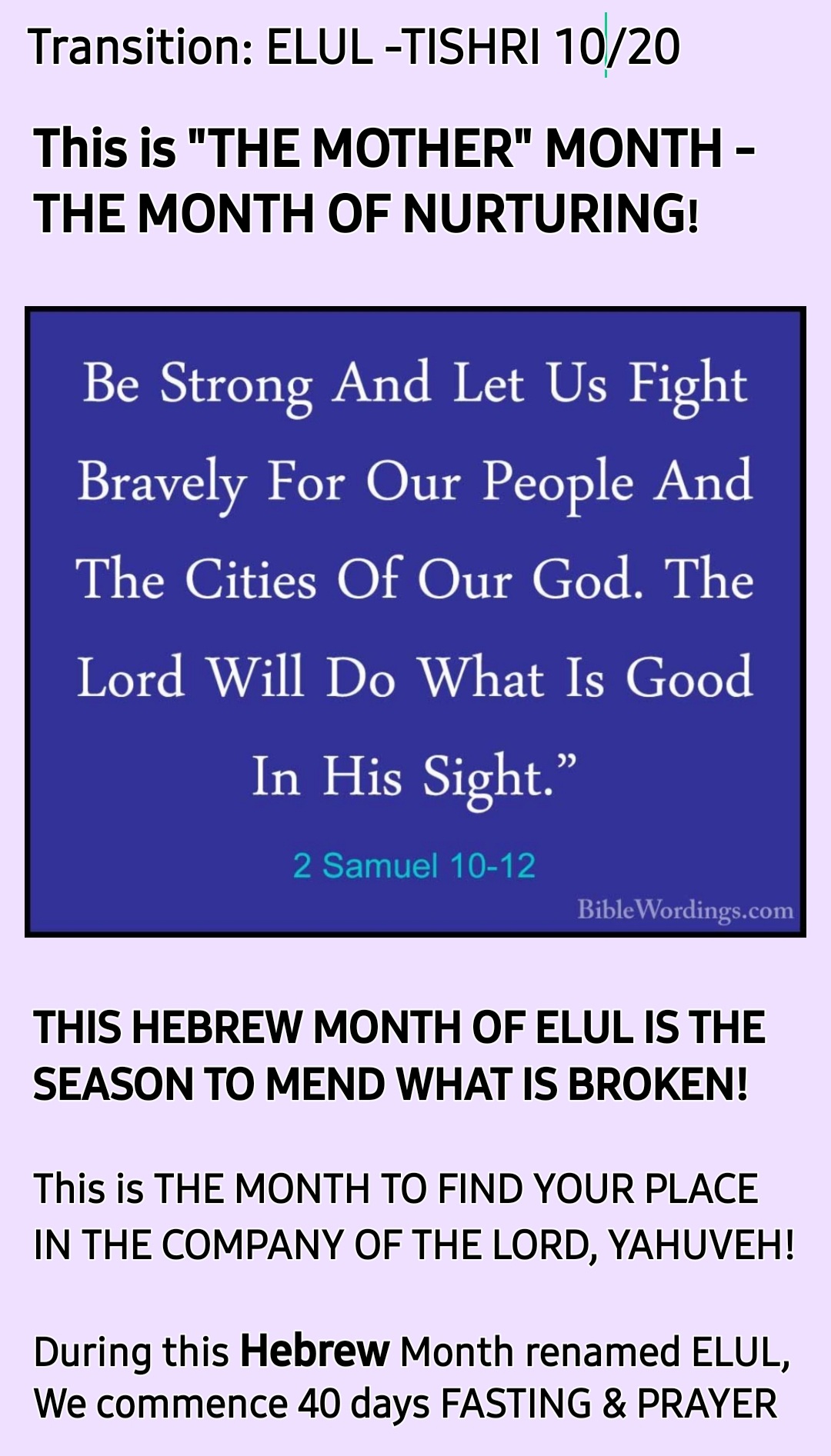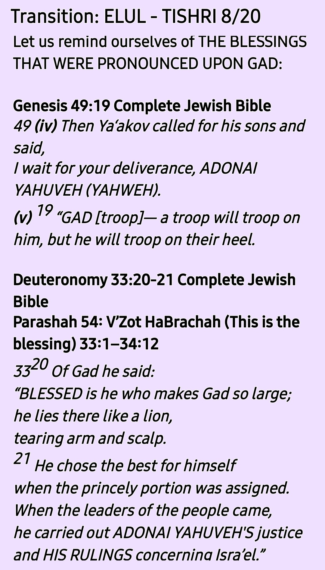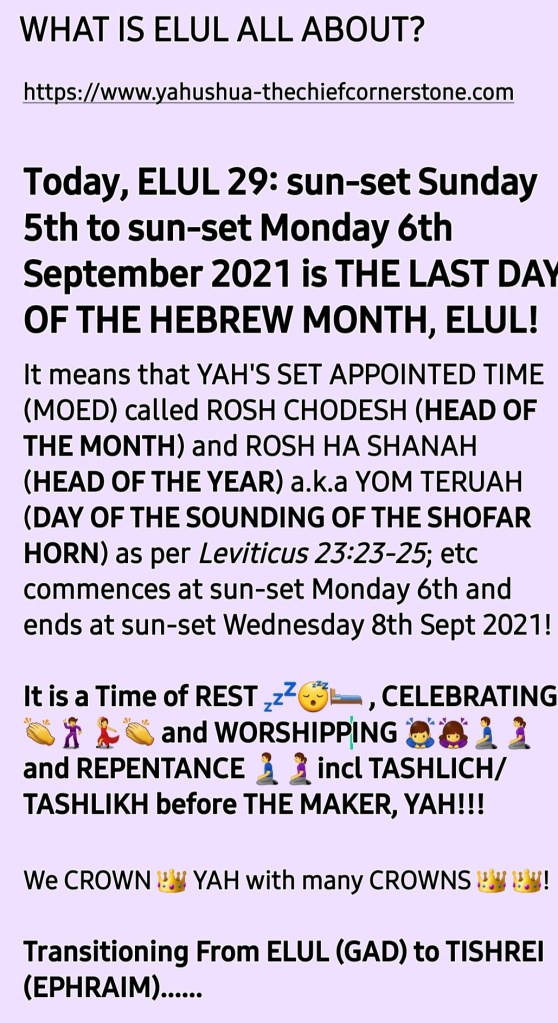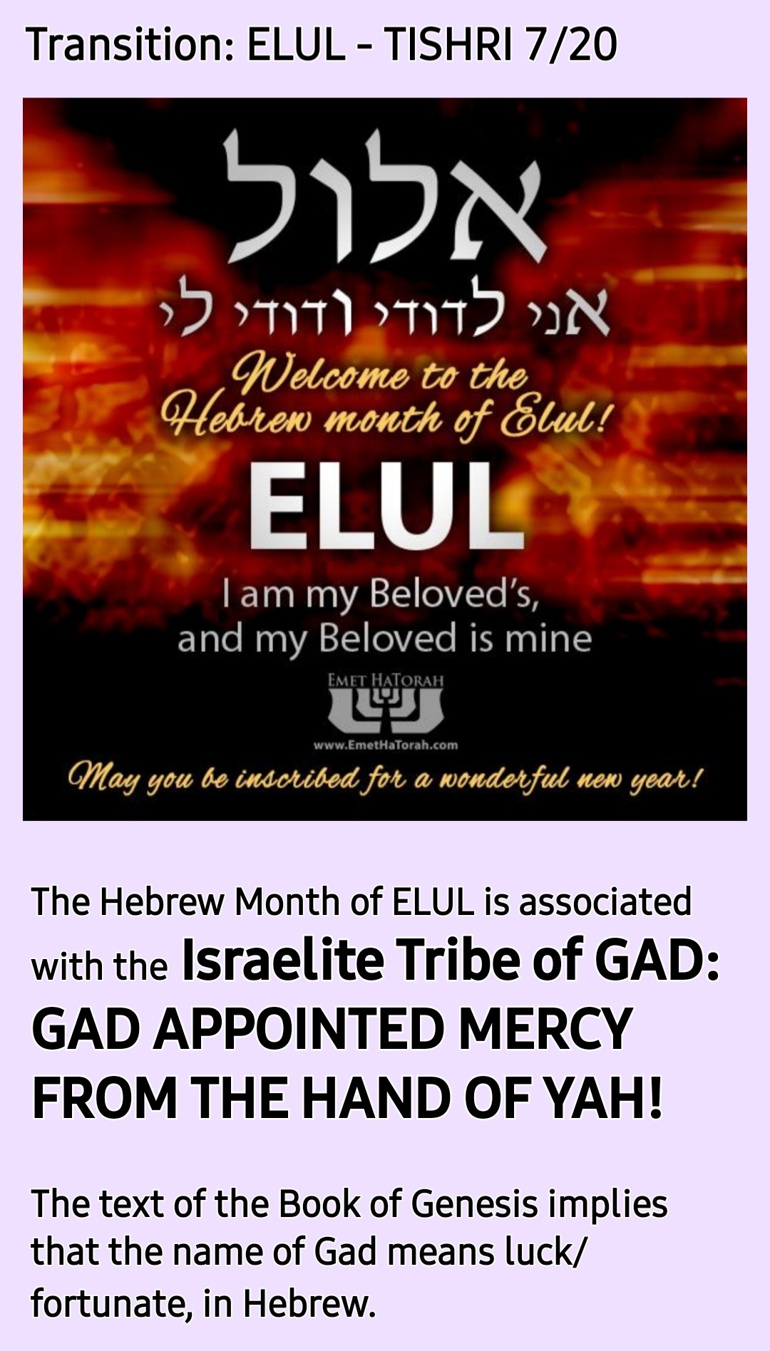 ELUL (GAD) To TISHREI (EPHRAIM)….