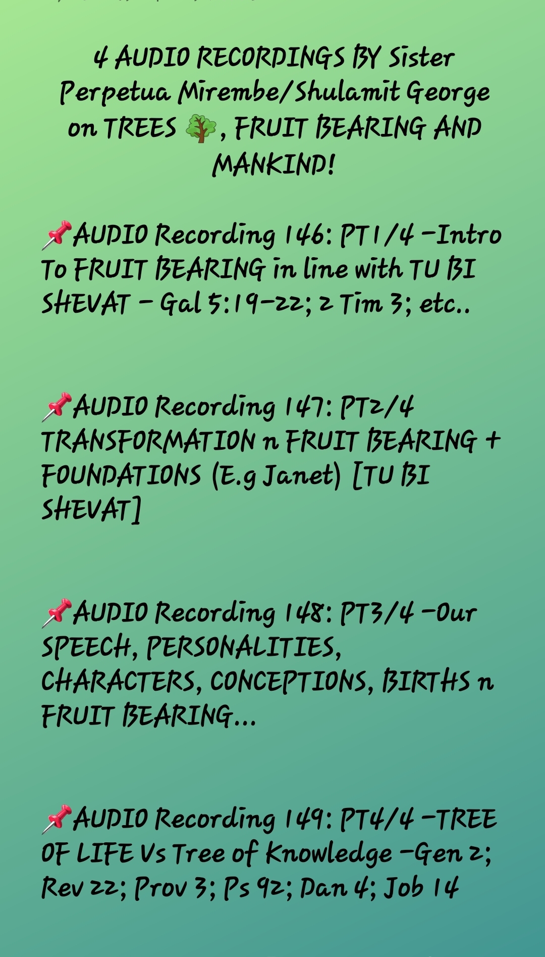 📌2. AUDIO Recording 147: PT2/4 TRANSFORMATION n FRUIT BEARING + FOUNDATIONS (E.g Janet) [TU BI SHEVAT]…