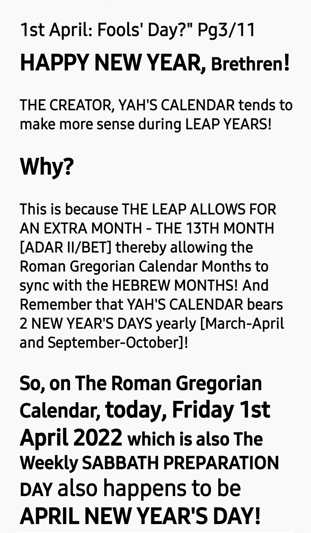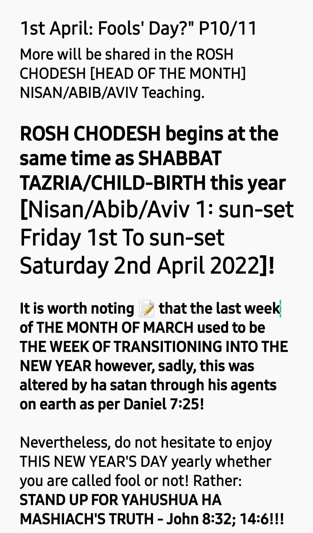THERE IS NO SUCH THING AS APRIL FOOLS’ DAY!!! *Thisis a mockery of THE CREATOR, YAH’S CALENDAR [HEBREW]!*