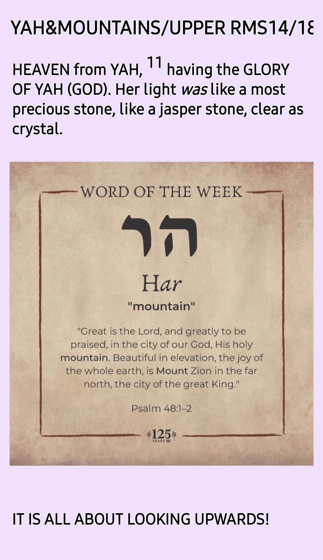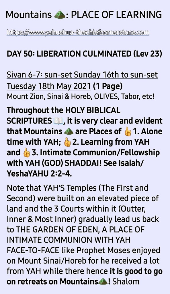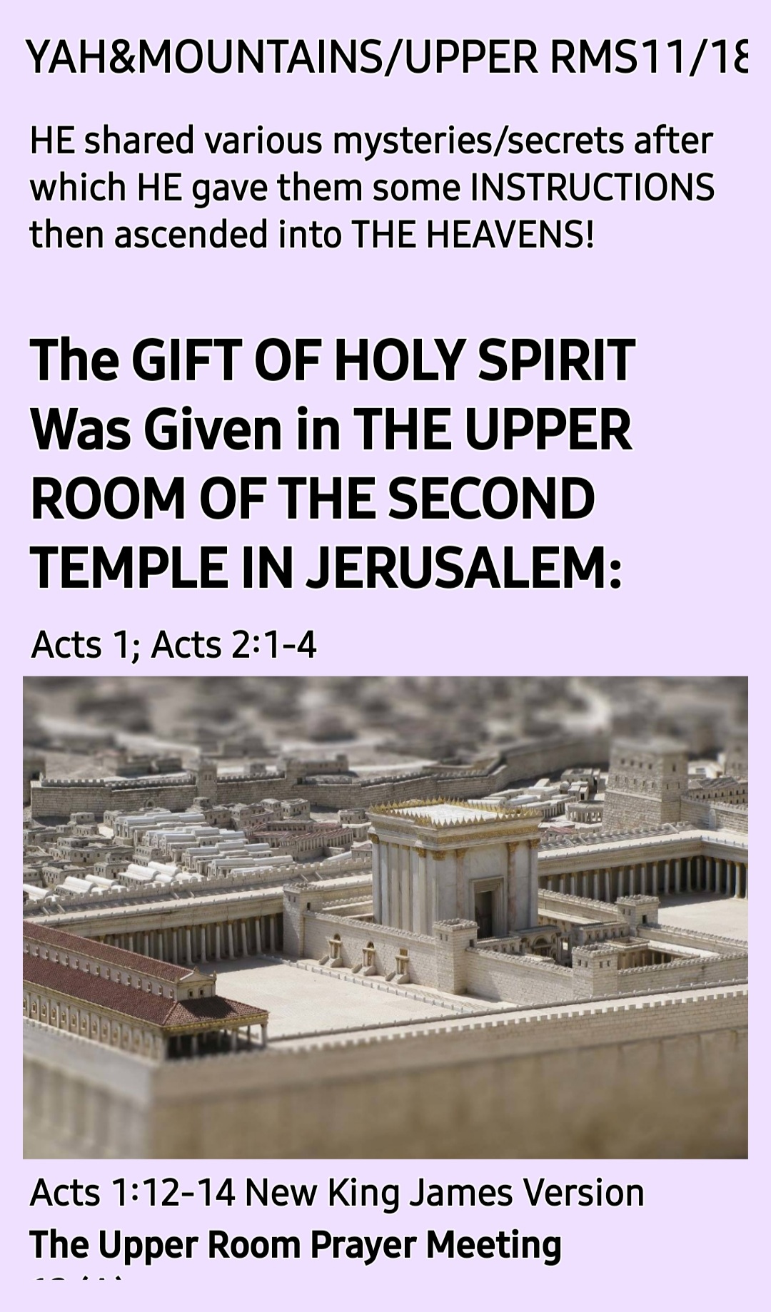 This is a Great Season in which to study and understand better why YAH always wants to meet us on Mountains ⛰ and in Upper Rooms. What is with elevated places and YAH?