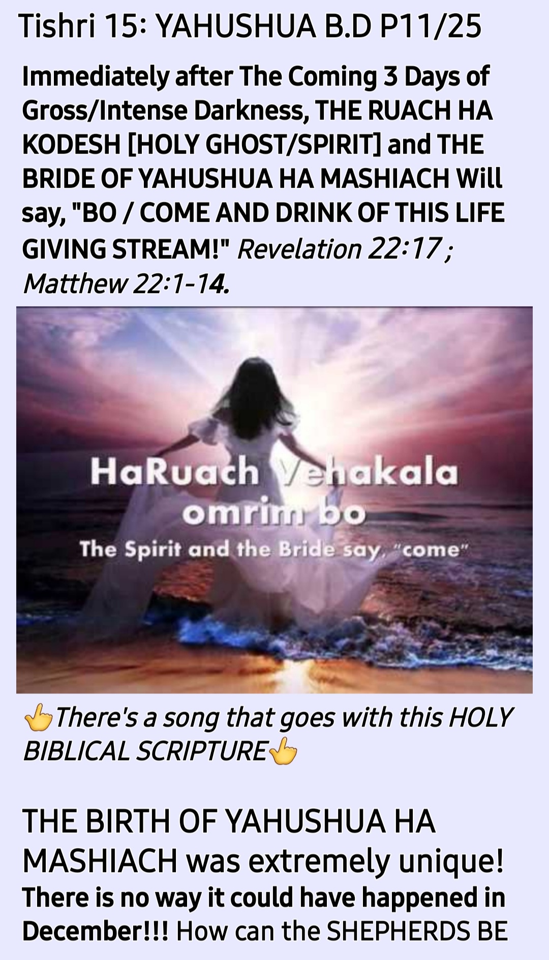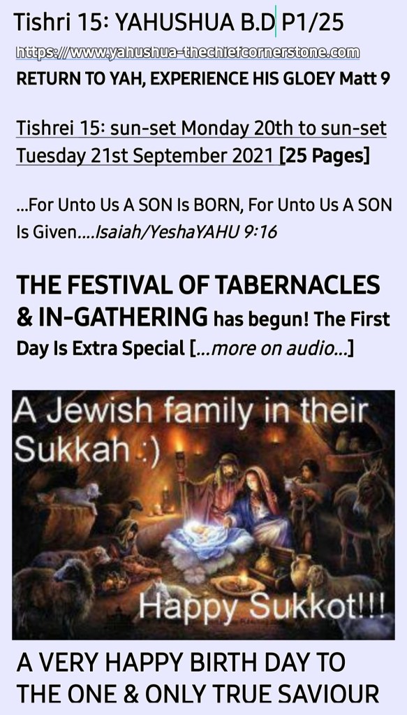 Will do another Audio on YAHUSHUA HA MASHIACH’S BIRTH and add it ASAP.